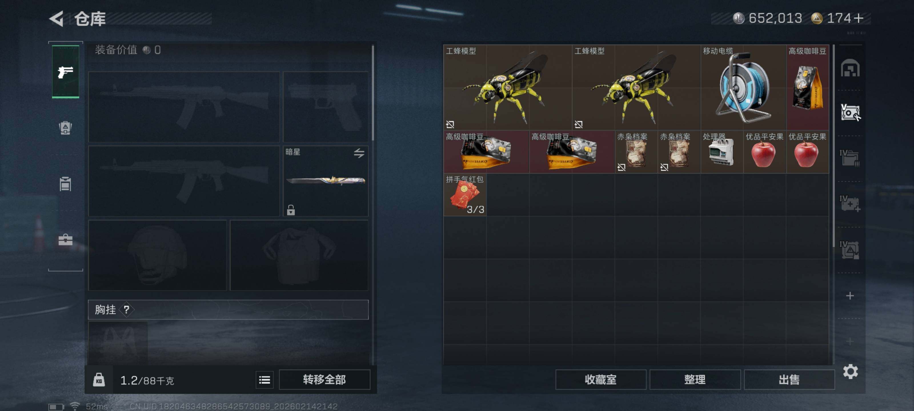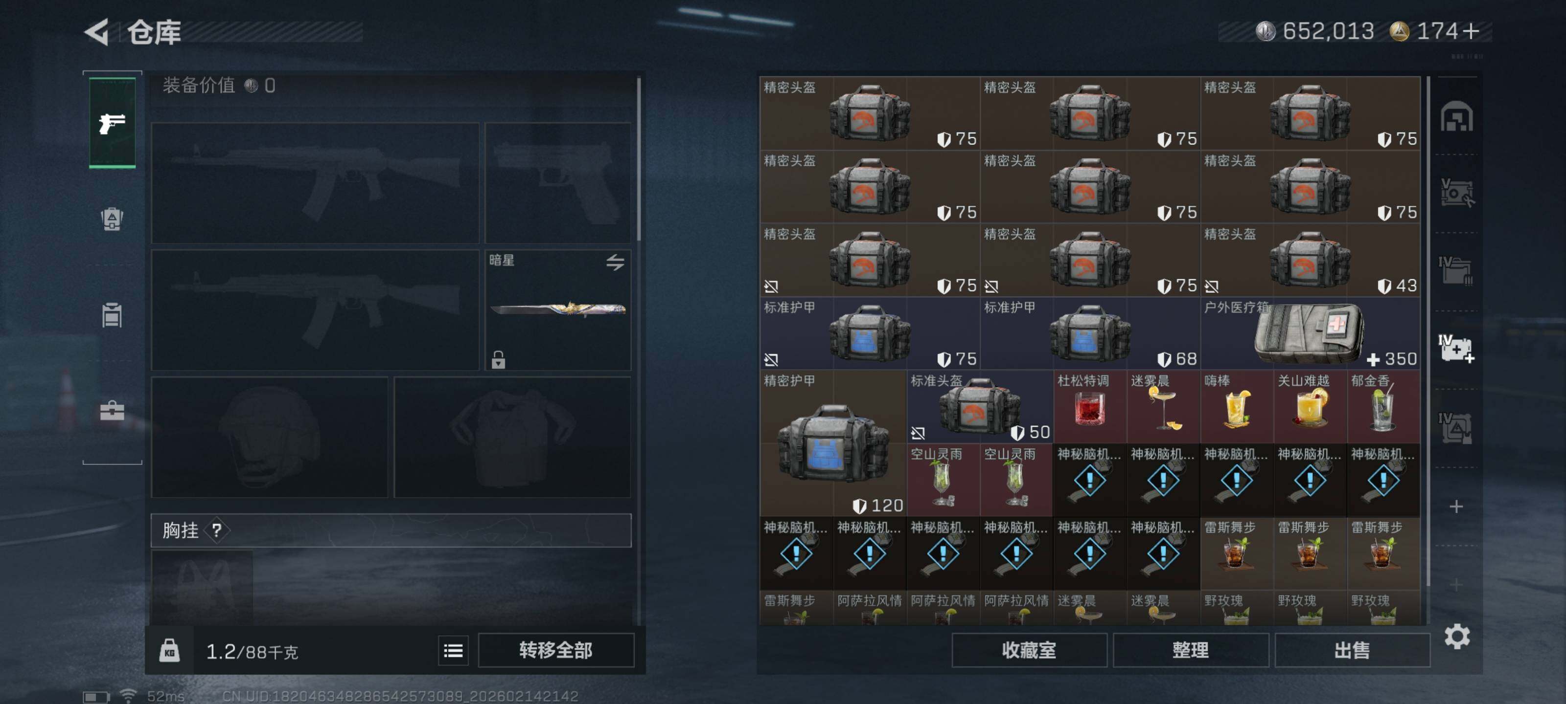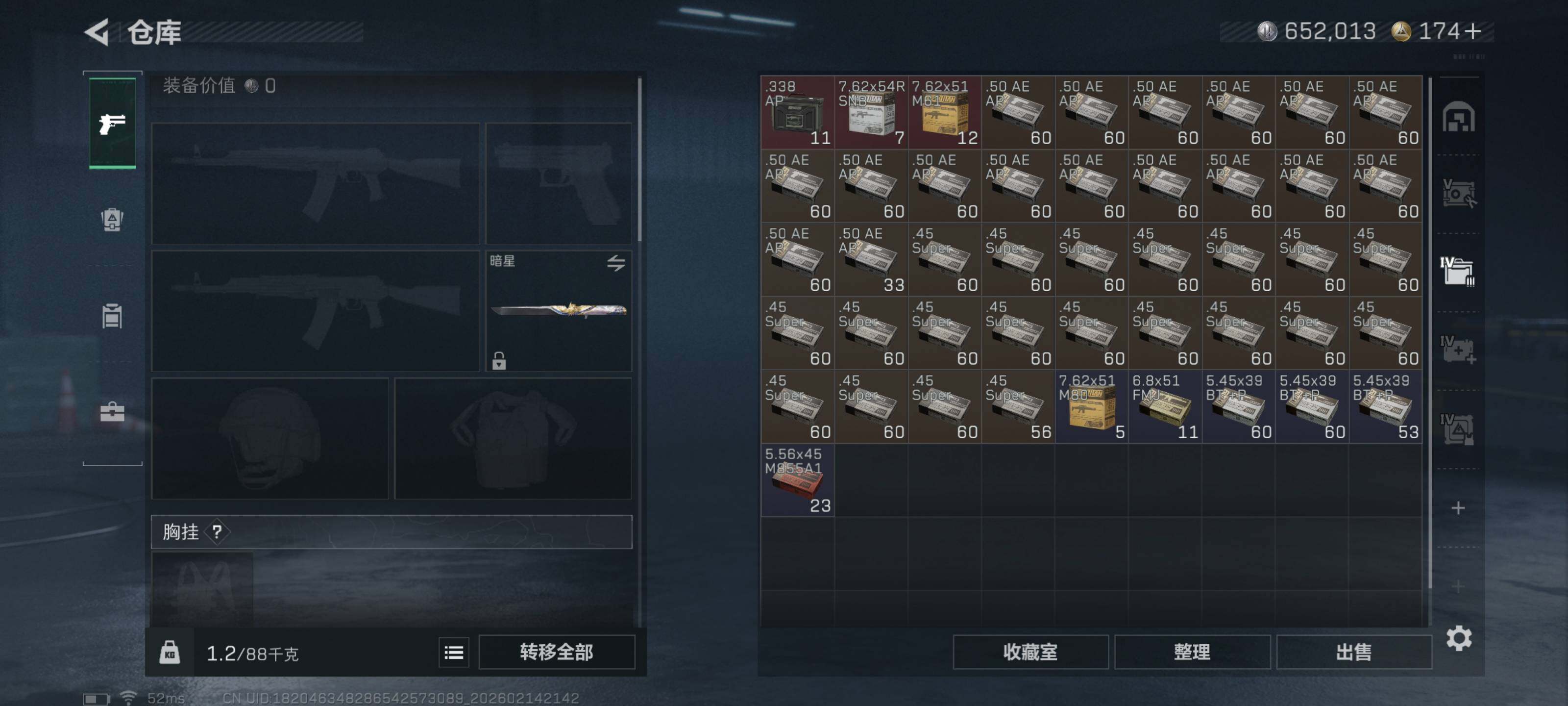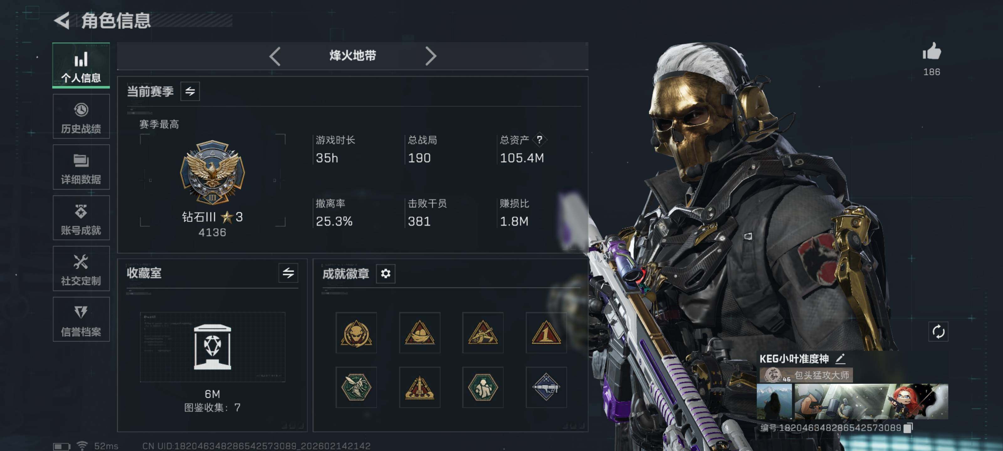 【特价出售/店主推荐】105m总资产-652k哈伏币-60烽火等级-钻石-50战场等级-上等兵【干员外观】:红狼-蚀金玫瑰,骇爪-水墨云图,深蓝-不破誓约,红狼-电锯惊魂,露娜-金牌射手【近战皮肤】:近战-暗星,近战-黑鹰【传说外观】:M4A1突击步枪-蚀金玫瑰,M4A1突击步枪-阿米娅,ASh-12战斗步枪-鹅鸭杀,M16A4突击步枪-狩猎时刻,M7战斗步枪-神秘艺术,SG552突击步枪-运动员,SCAR-H战斗步枪-水墨云图,SCAR-H战斗步枪-启航,G3战斗步枪-狩猎时刻,G3战斗步枪-