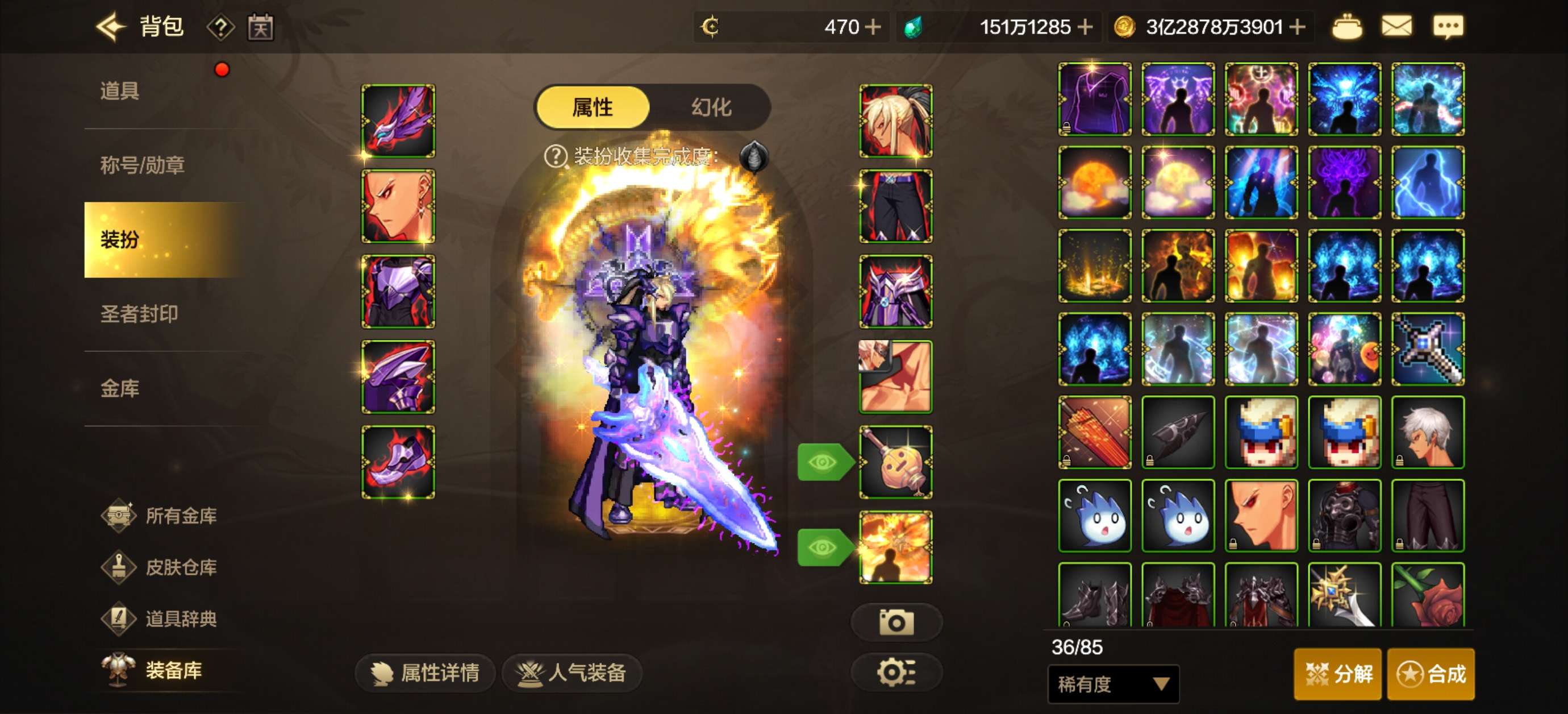 万氪8套天空狗子,带150多万泰拉,魔剑武器装扮,万氪武器在仓库没打开,470点卷,材料多多,双尊四