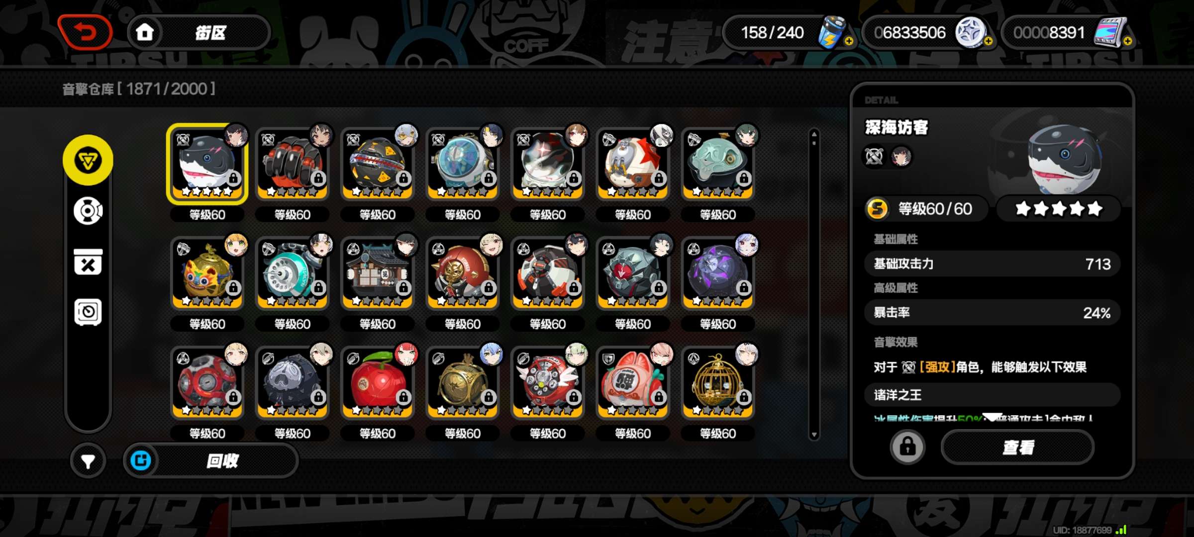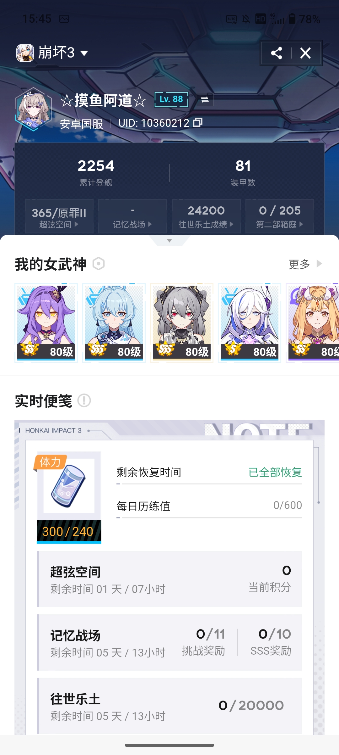 65艾莲61青衣61星见雅61叶瞬光21简21悠真,已有限定出了耀嘉音和席德全专武,之前是主玩崩三的