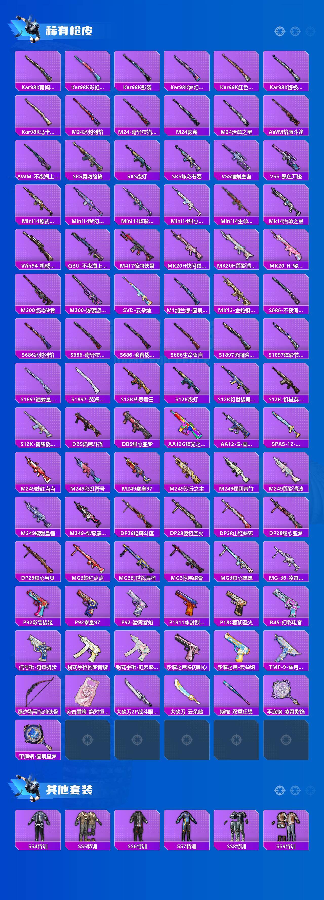 苹果 【素材号 梦幻火箭/浪漫天命/都市猎人/冥河战士/胖达圆圆/暗影哥特/Mark.06/放客神游/AKM-梦之光华(四级)/SCAR-L-彩装战姬(四级)/M416-心之恋语(四级)/M416-至情至圣(九级)/兰博基尼Aventador SVJ(翡翠绿)/星河领航(磐石银)】手Q-19粉装-16特效枪-5载具-5粉色飞行器-108118热力值-13王牌印记-264套装-307枪皮