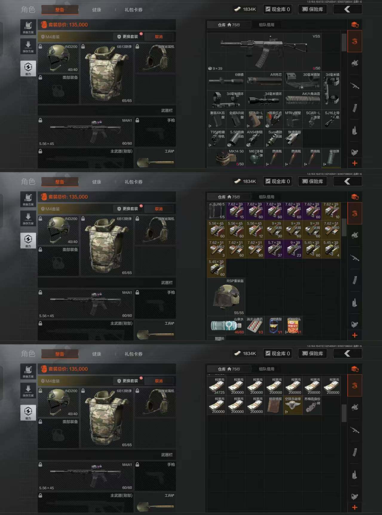 cr1,暗区满级小号,仓库2.4M科恩币1834K,4紫枪皮,工兵铲,便宜出