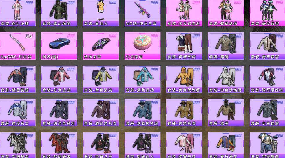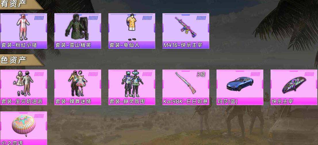 苹果 手Q-3粉装-1特效枪-1载具-0粉色飞行器-31072热力值-5王牌印记-95套装-105枪皮