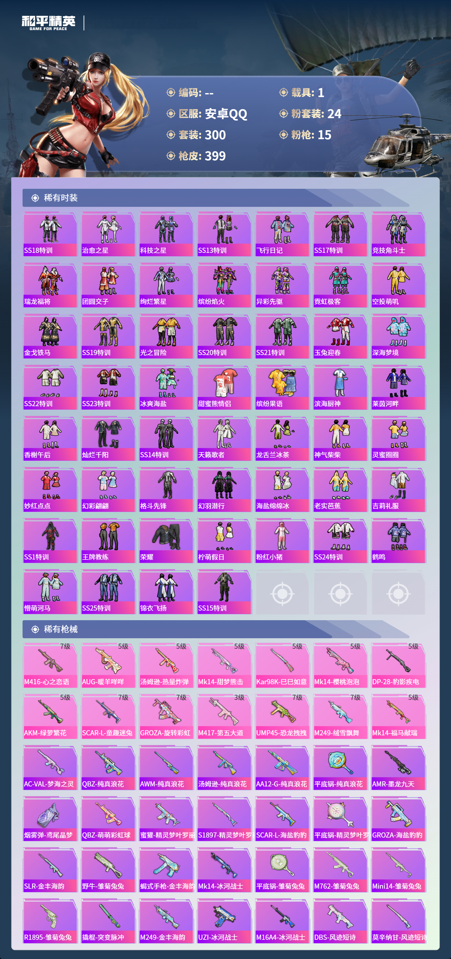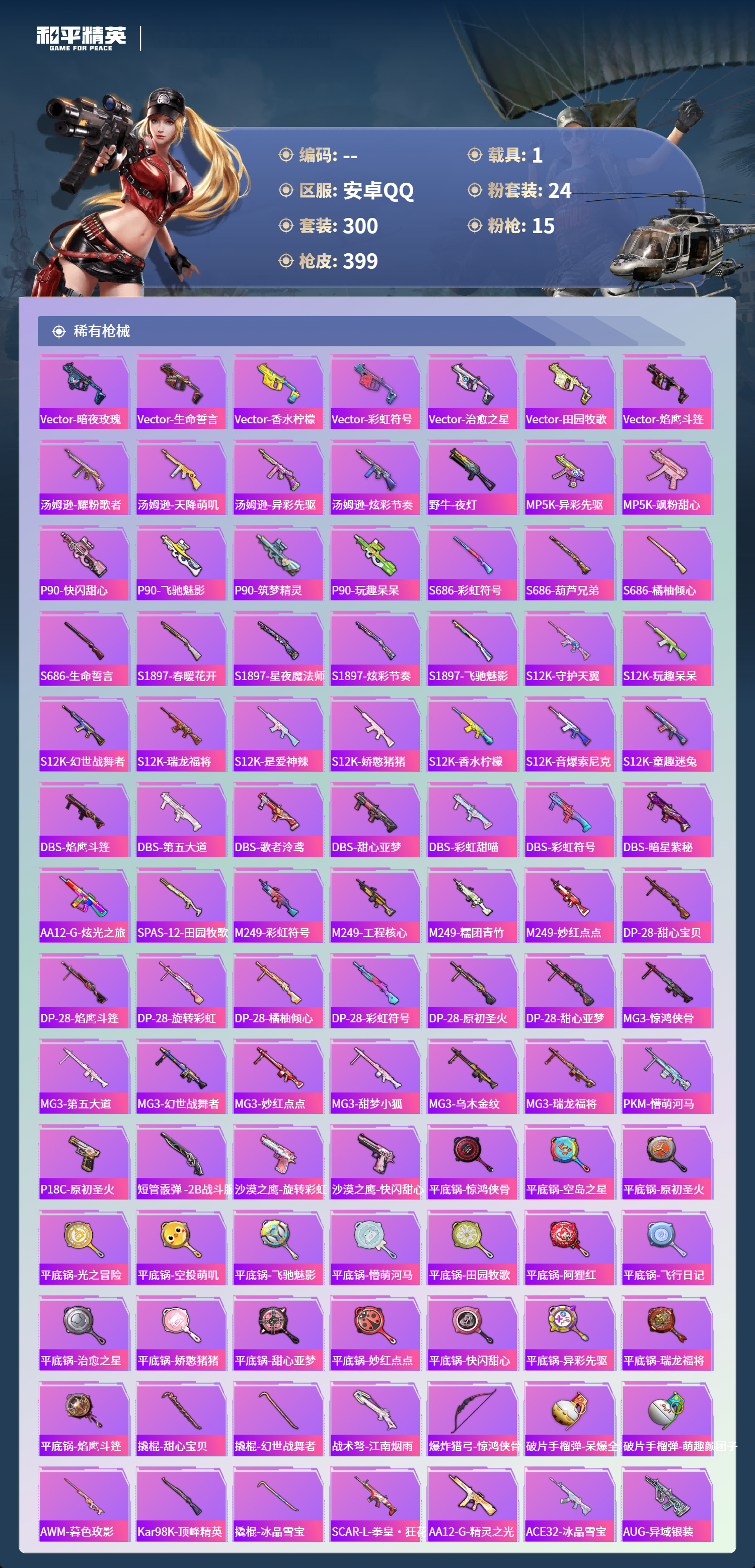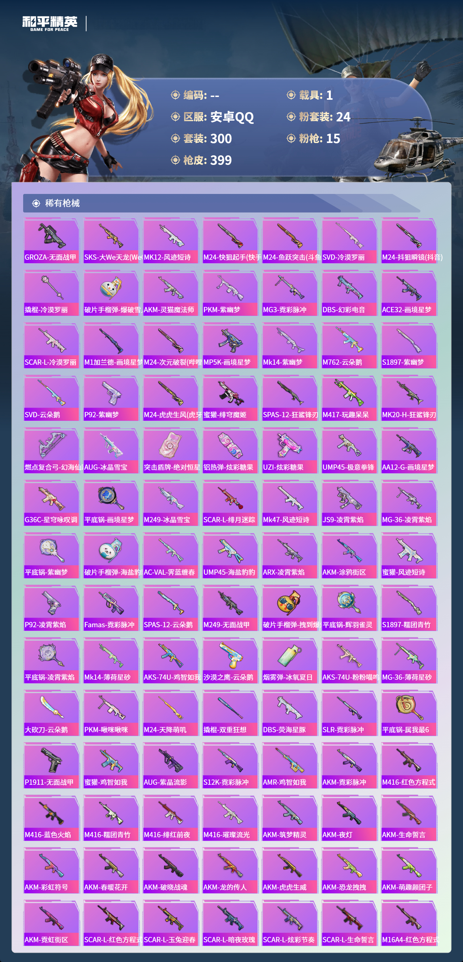 安卓手Q-22王牌印记-1红装-24粉装-15特效枪-1载具-热