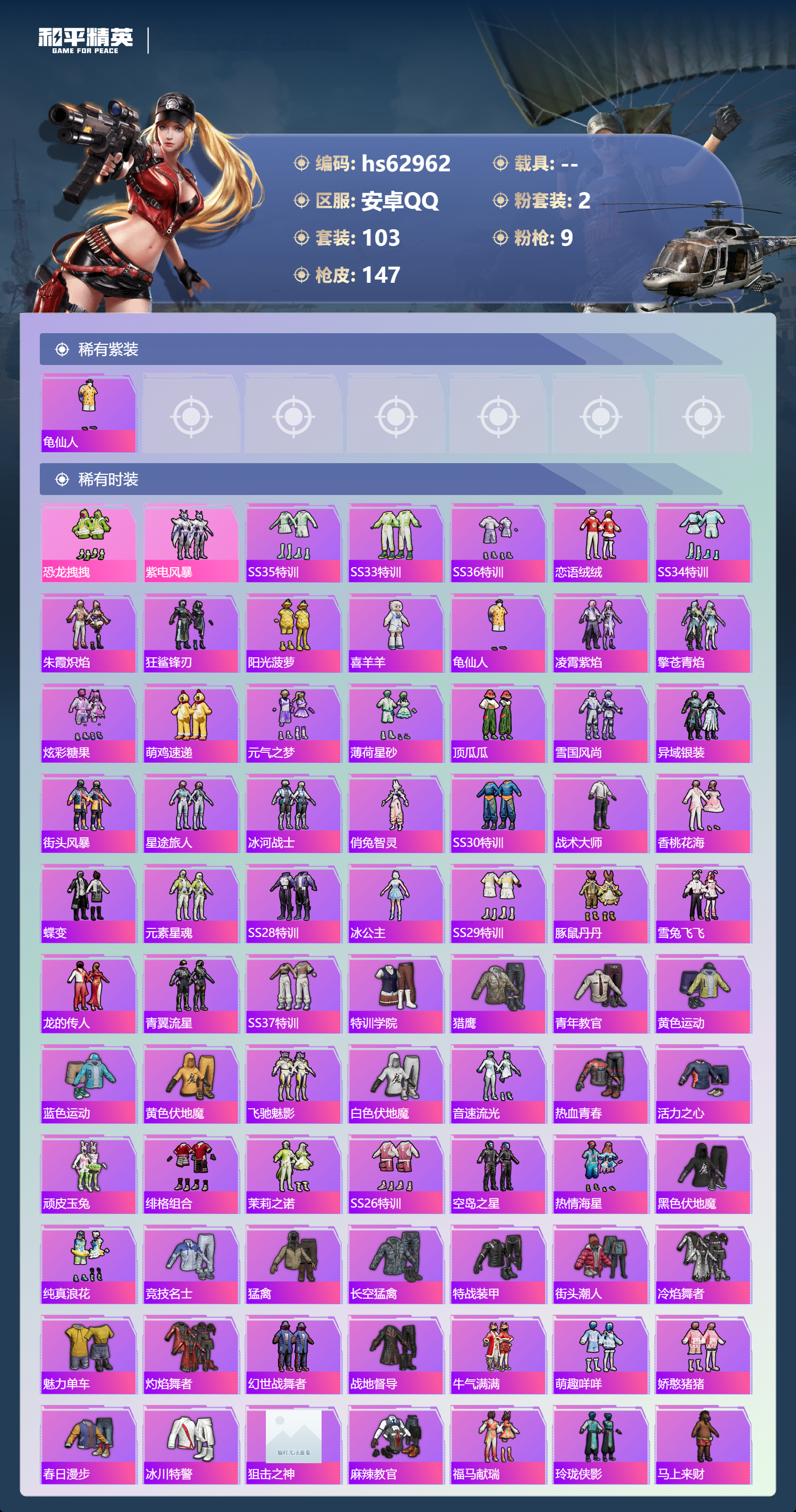 hs62962 安卓手Q-3王牌印记-2粉装-9特效枪-44719热力值-103套装-147枪皮
