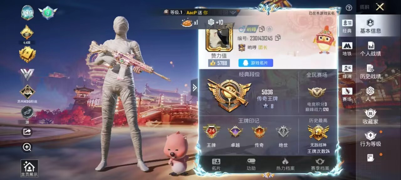安卓手Q-24王牌印记-有战神框-16粉装-16特效枪-热力值-
