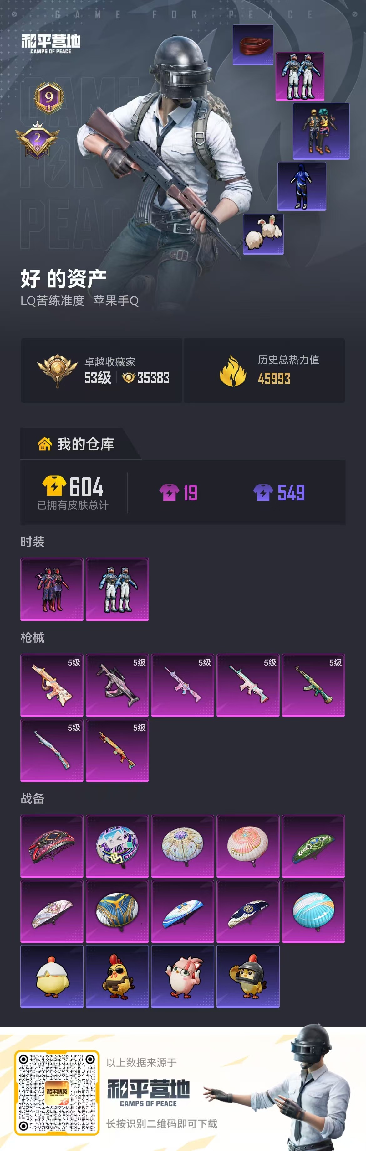 hs62990 苹果手Q-9王牌印记-2粉装-7特效枪-45993热力值-125套装-166枪皮-2卓越印记