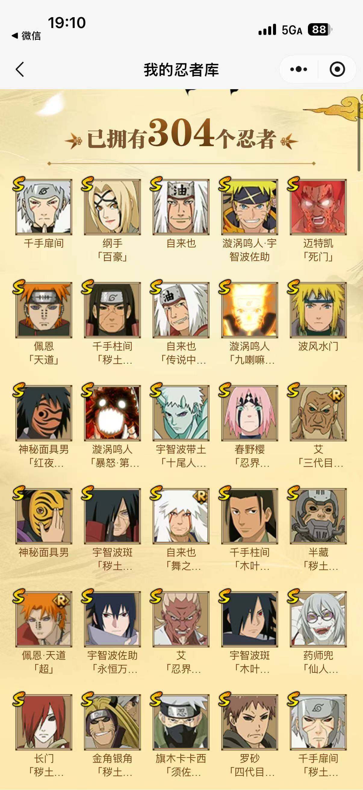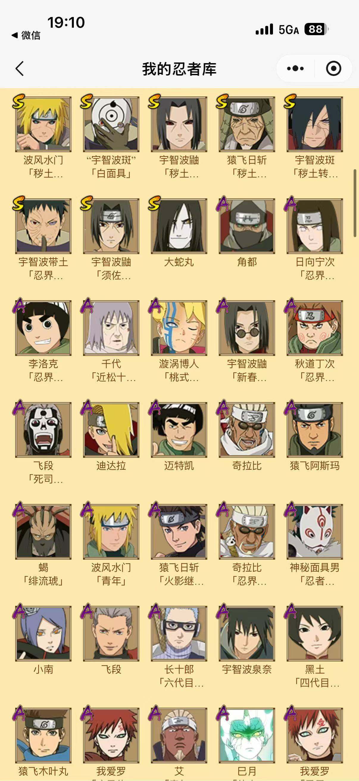 38S级忍者数-60A级忍者数【S级忍者】:长门「秽土转生」(3星),半藏「