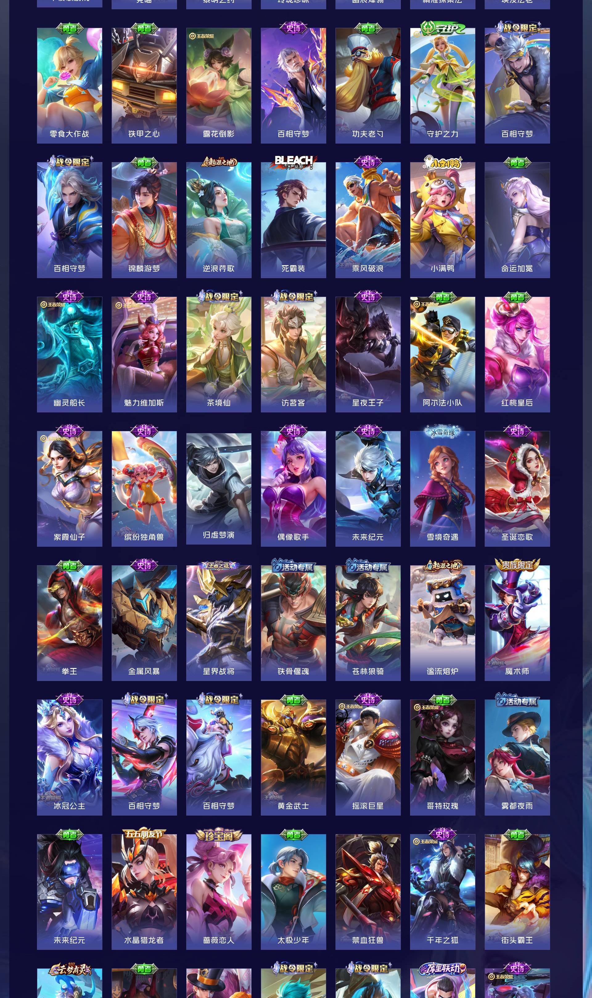 V7 皮肤207 英雄126 绝世王者 荣耀典藏1 珍品传说3 传说15 其他皮肤194
