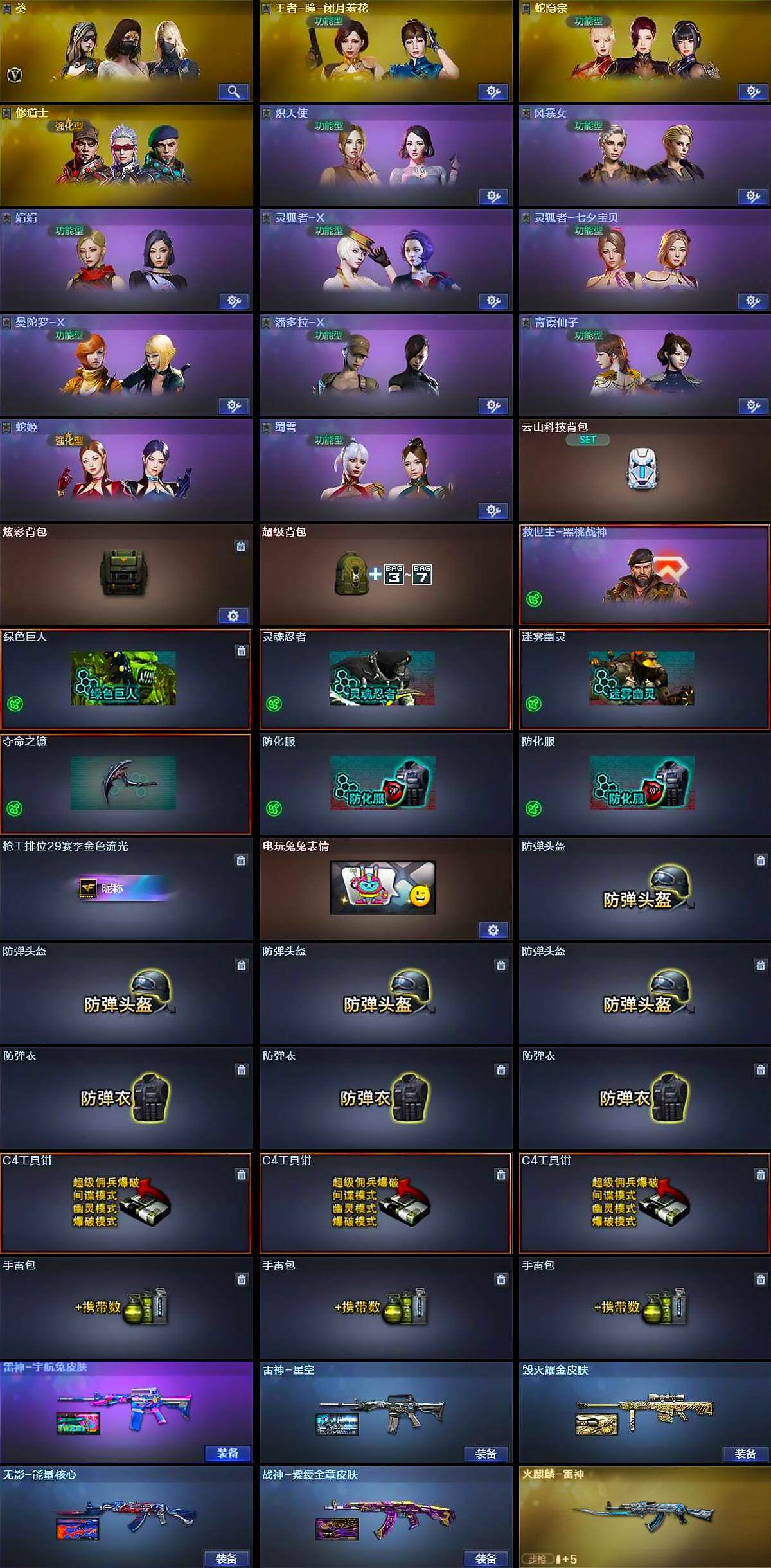 【皮肤】:雷神-星空,雷神-宇航兔皮肤,火麒麟-雷神,毁灭耀金皮肤,毁灭-英雄计划 皮肤,无影-能量核心,战神-紫绶金章皮肤