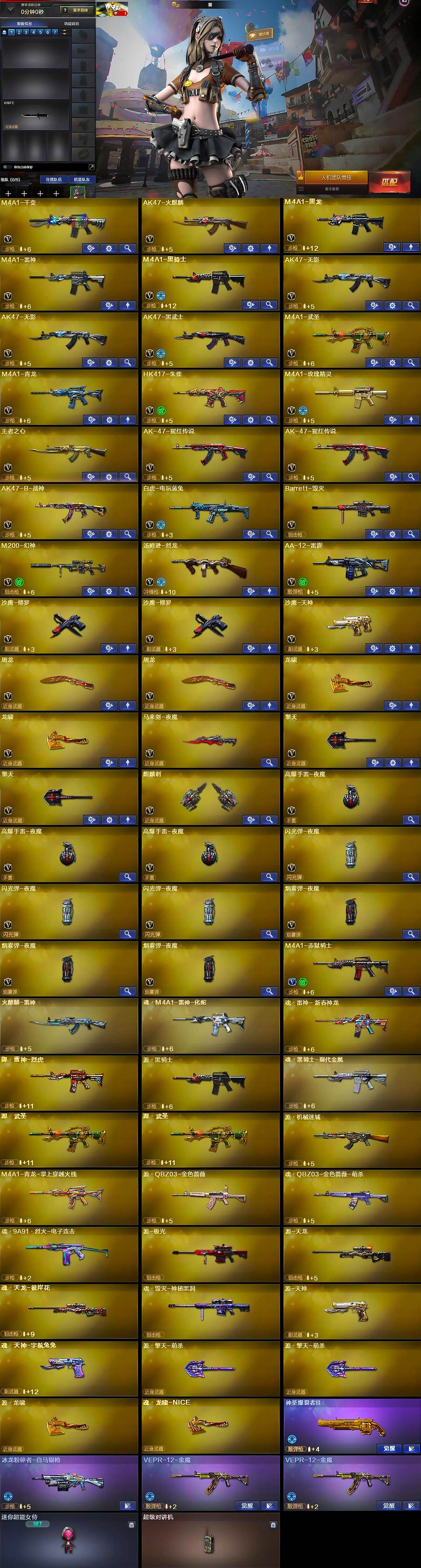 【热门武器】:HK417-朱雀,M4A1-青龙,M200-幻神,白虎-电玩蓝兔,M4A1-黑骑士,汤姆逊-烈龙,沙鹰-修罗*2