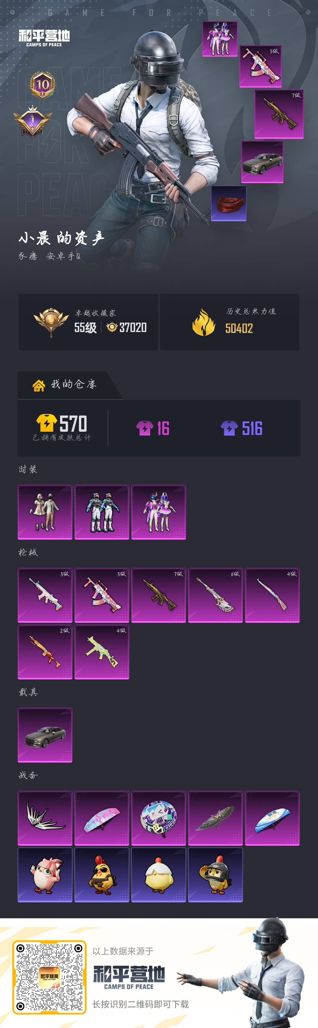 hs63096 安卓手Q-10王牌印记-3粉装-7特效枪-1载具-50402热力值-124套装-15