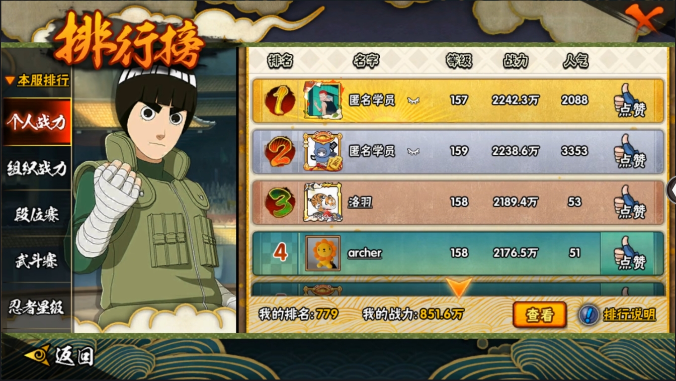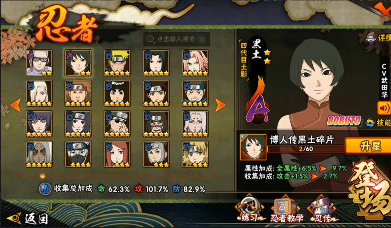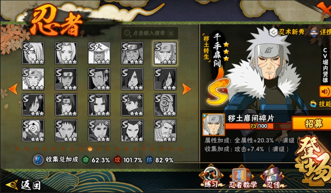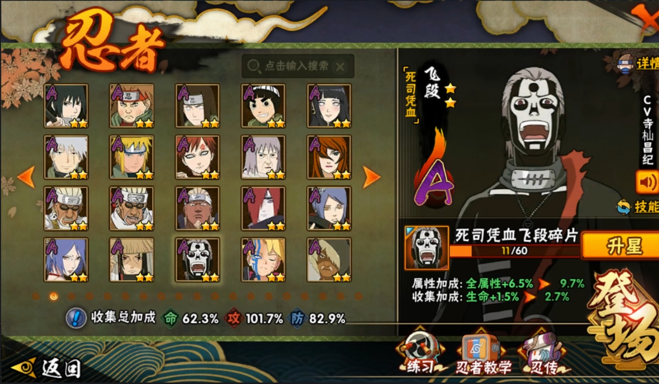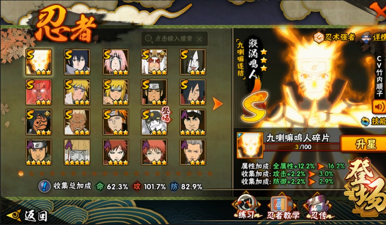 【编号05819可秒换绑】店长推荐特价处理精品号14S级忍者数-28A级忍者数【S级忍者】:波风水门「秽土转生」(3星),千手柱间「秽土转生」(3星),宇智波斑「秽土转生·解」(3星),春野樱「忍界大战」(3星),艾「忍界大战」(3星),自来也「舞之豪杰」(3星),大蛇丸(3星),波风水门(3星),神秘面具男「红夜之刃」(3星),漩涡鸣人「九喇嘛连结」(3星),迈特凯「死门」(3星),佩恩「天道」(3星),宇智波佐助「永恒万花筒」(3星),大筒木桃式(3星)【A级忍者】:艾「青年」(2星),长门