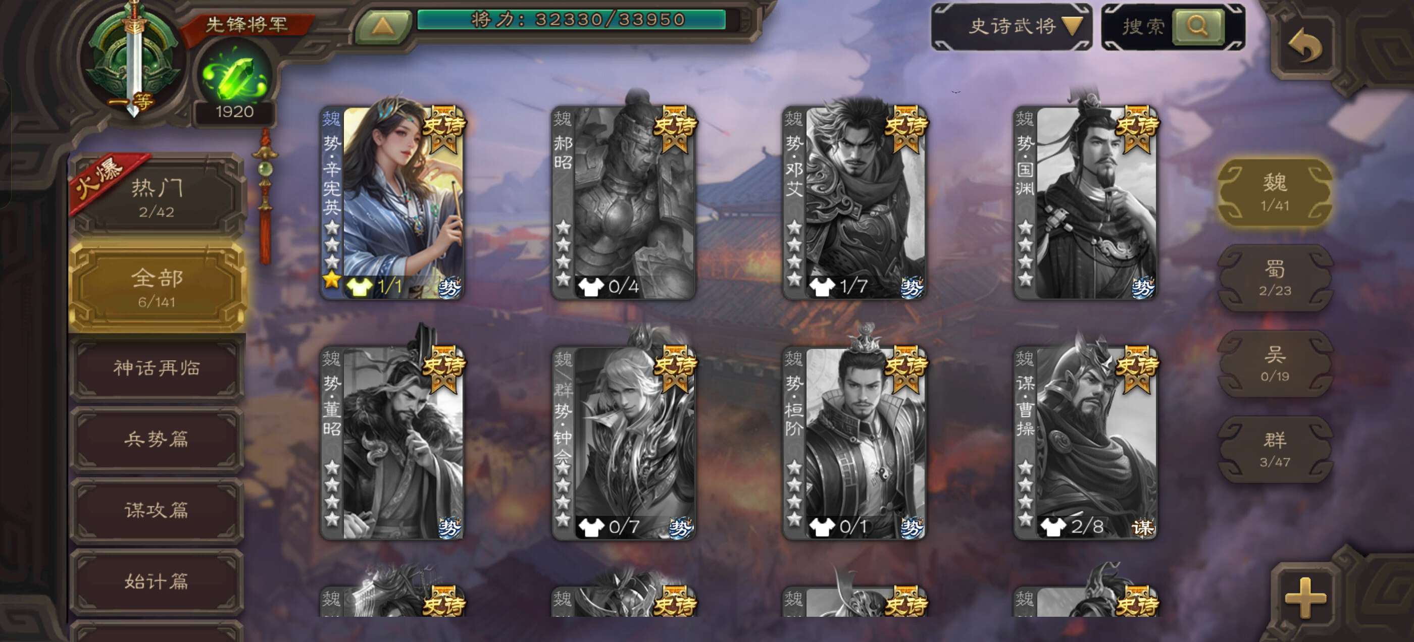史诗武将数量: