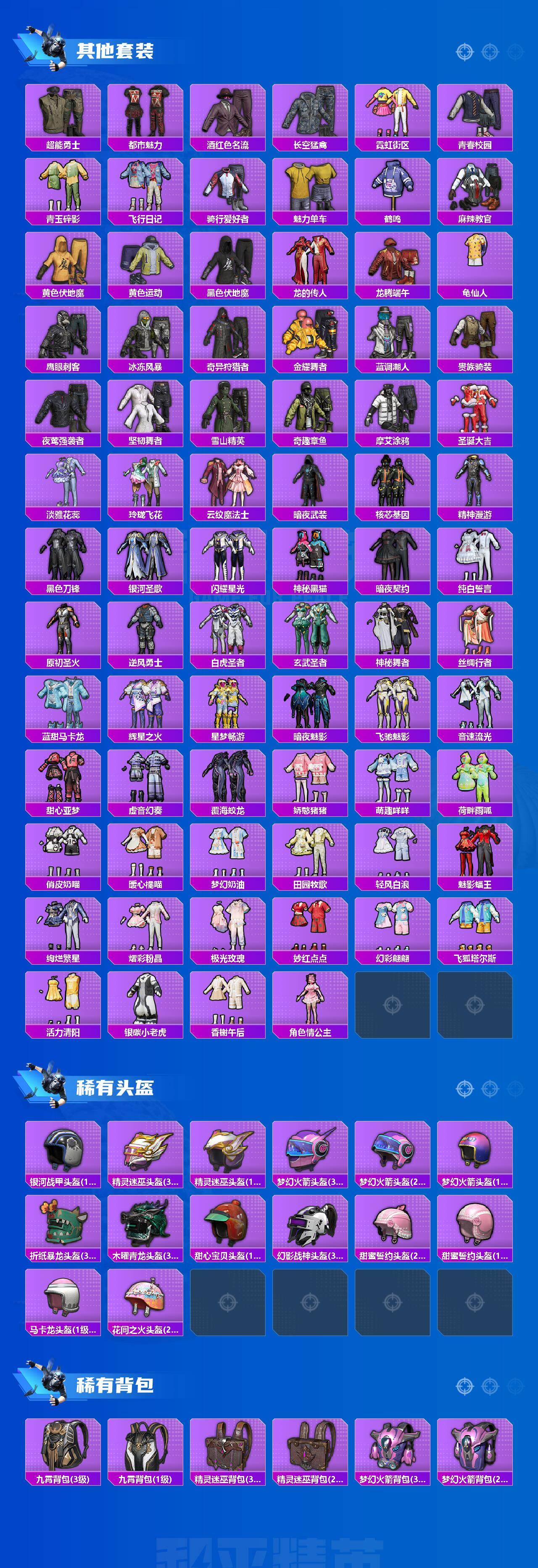 【粉色套装】:粉装-天使彩虹糖,粉装-梦幻火箭,粉装-金风玉露,粉装-闪耀律动,粉装-橘柚倾心,粉装-赤焰黑爵,粉装-圣光天使,粉装-闪光银龙,粉装-傲雪凌霜,粉装-霁雪冰心,粉装-彩虹甜喵,粉装-冰川幽秘,粉装-霞光圣骑,粉装-寒光使者,粉装-苔