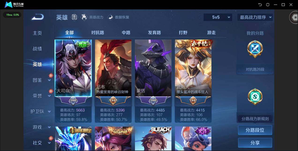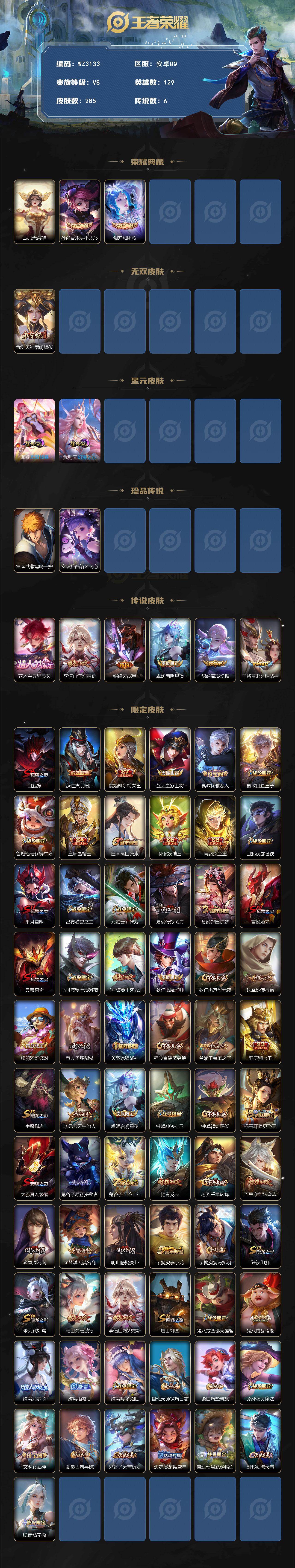 【秒换绑】安卓Q-V8-至尊星耀IV段位-129英雄-285皮肤-2典藏皮肤-1典藏英雄-1无双-2珍品传说-6传说-62史诗