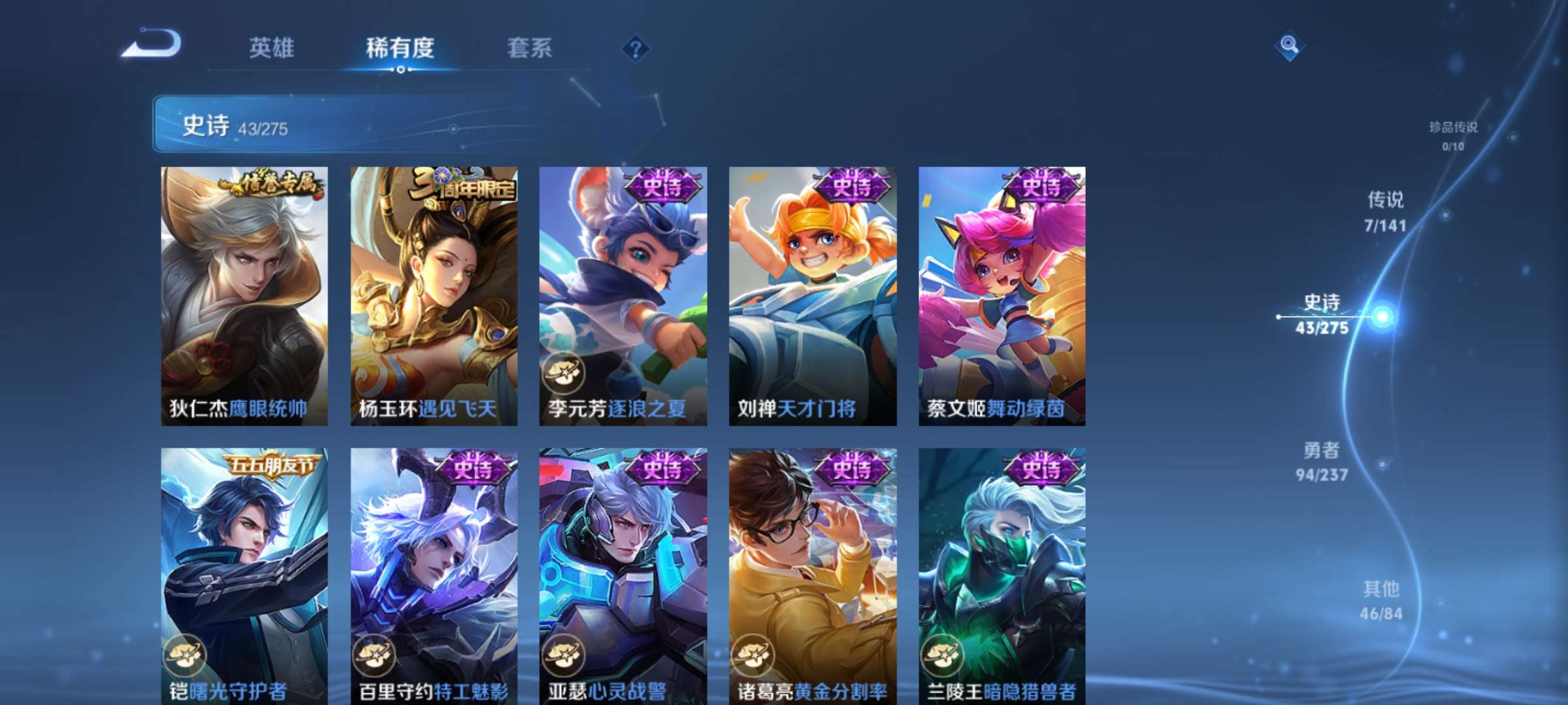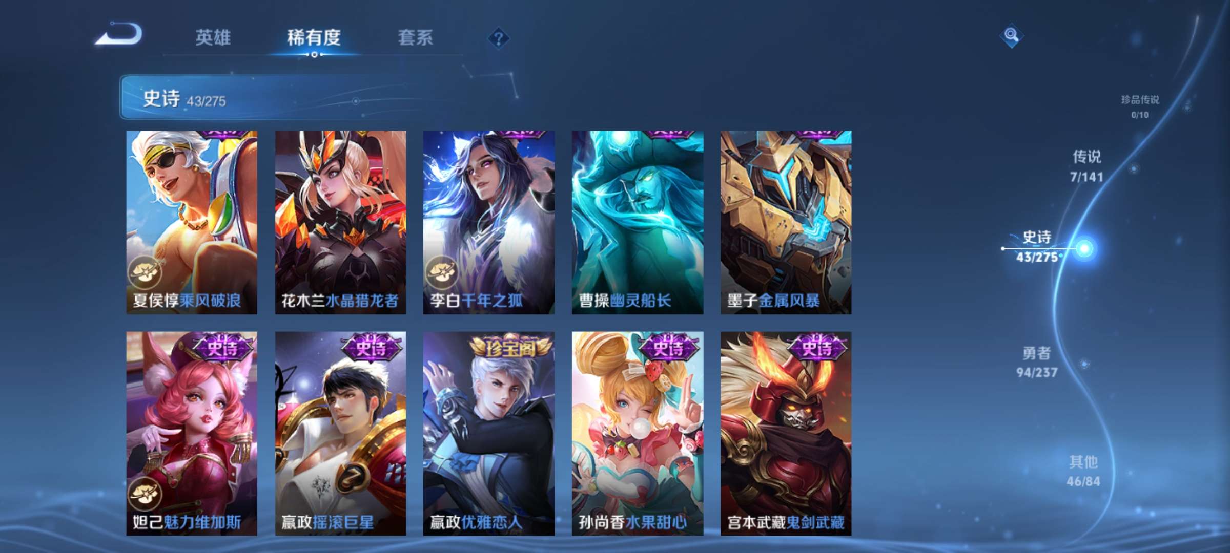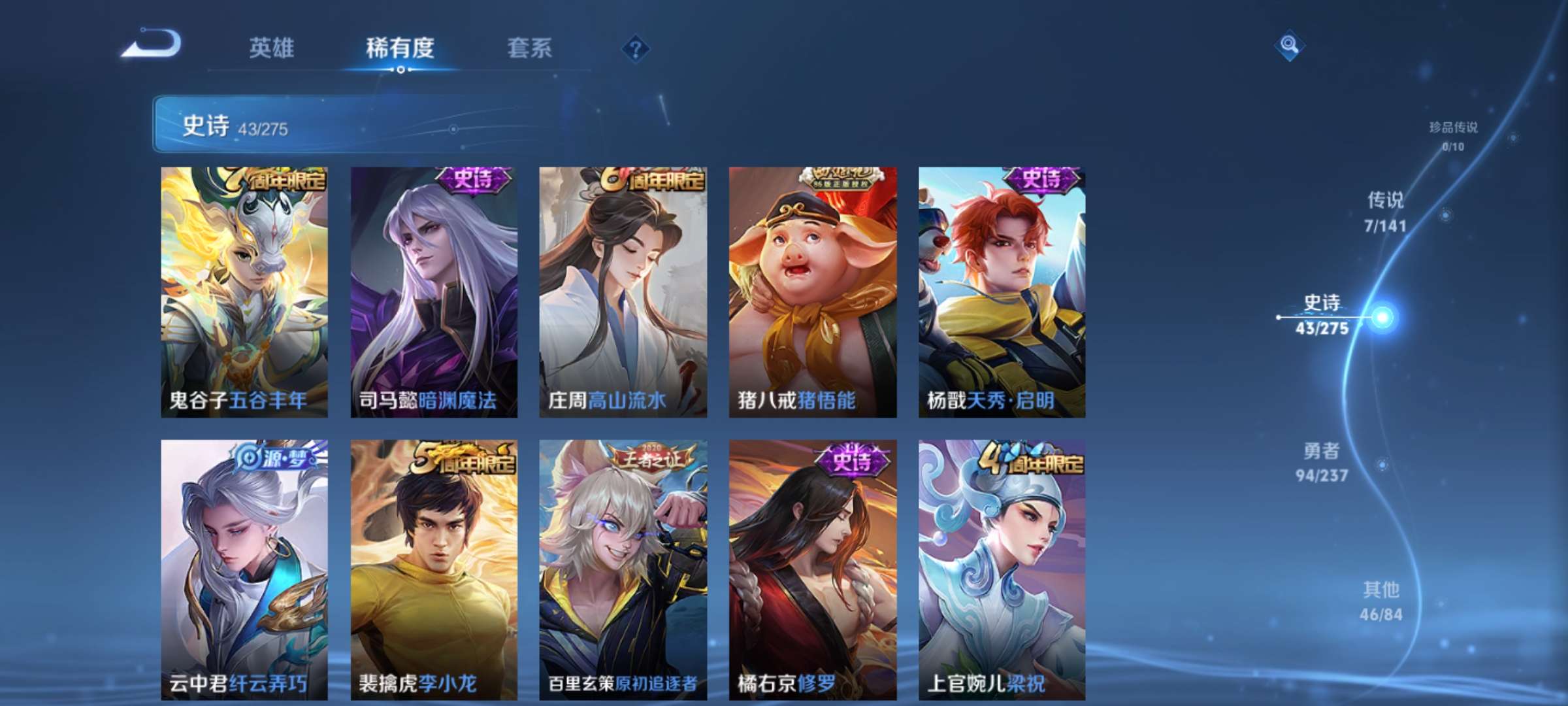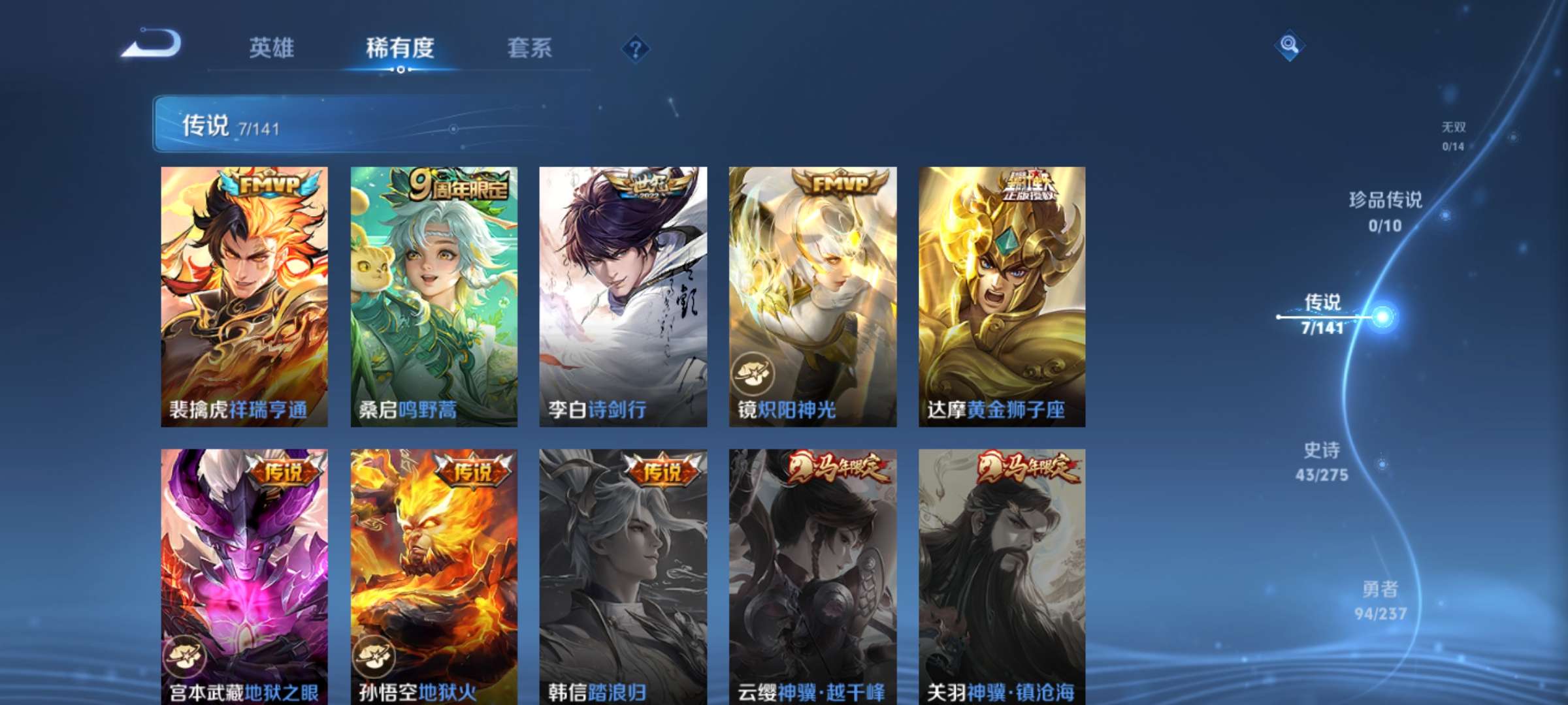 安卓Q-128英雄-190皮肤1星传说7传说43史诗