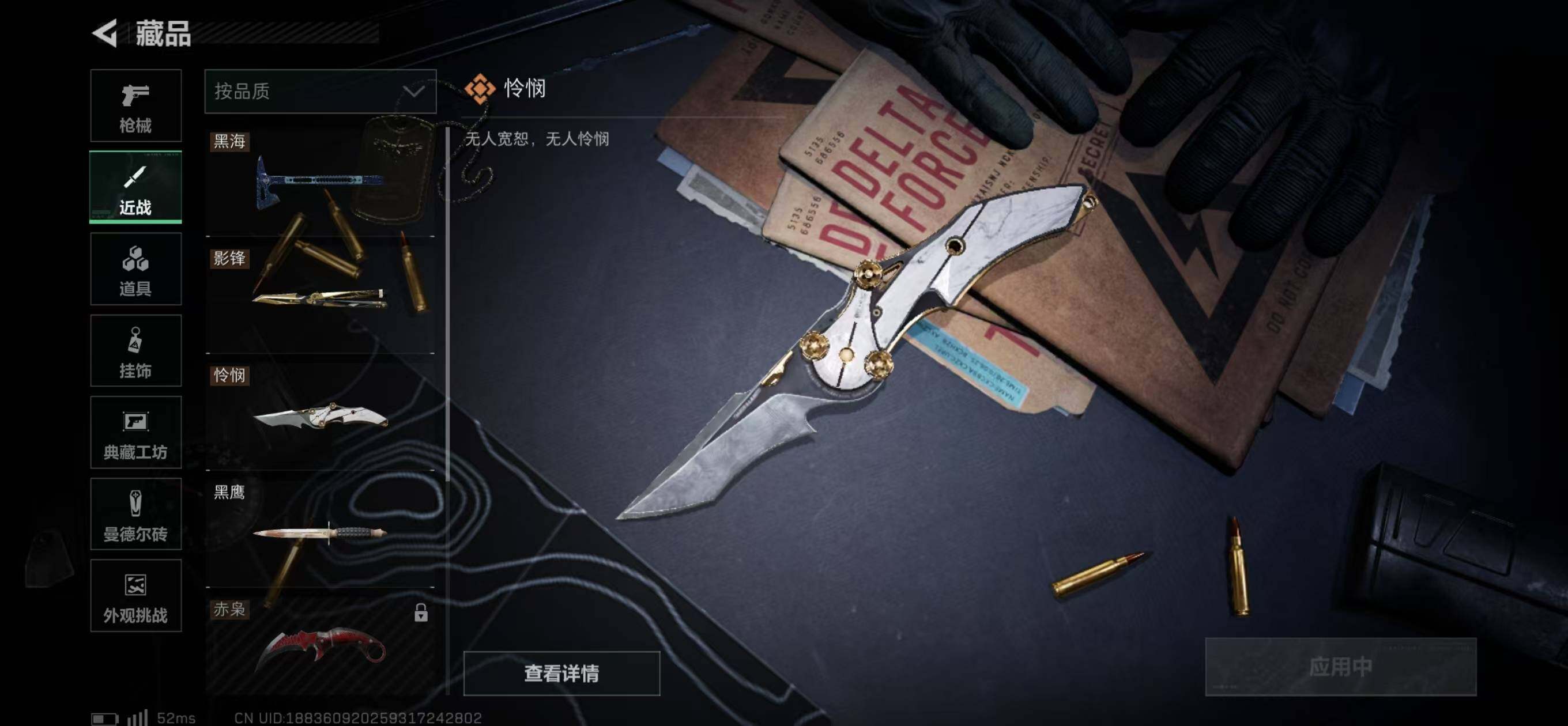【近战皮肤】:近战-怜悯,近战-影锋,近战-黑海,近战-黑鹰