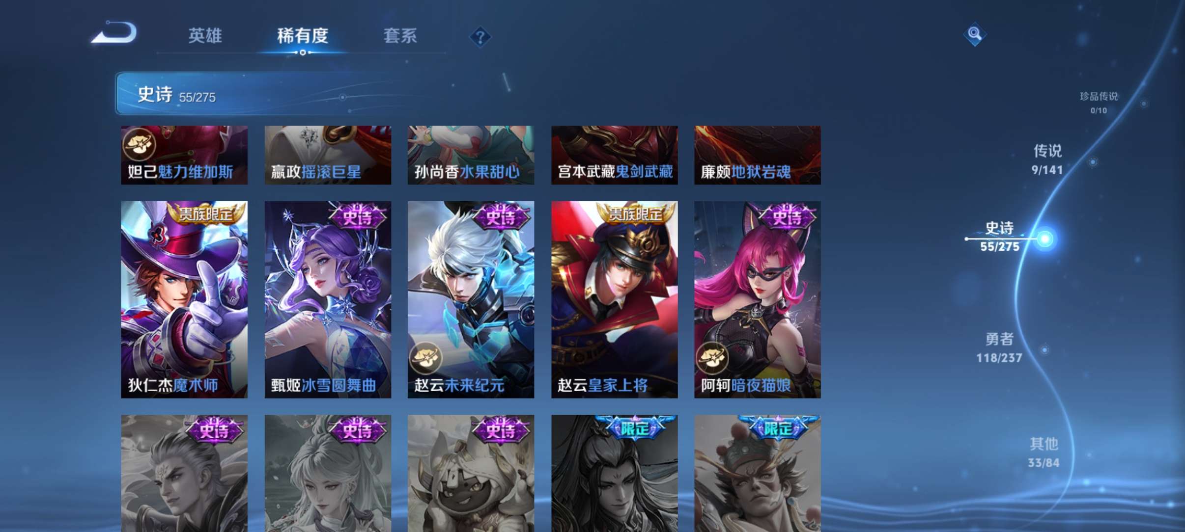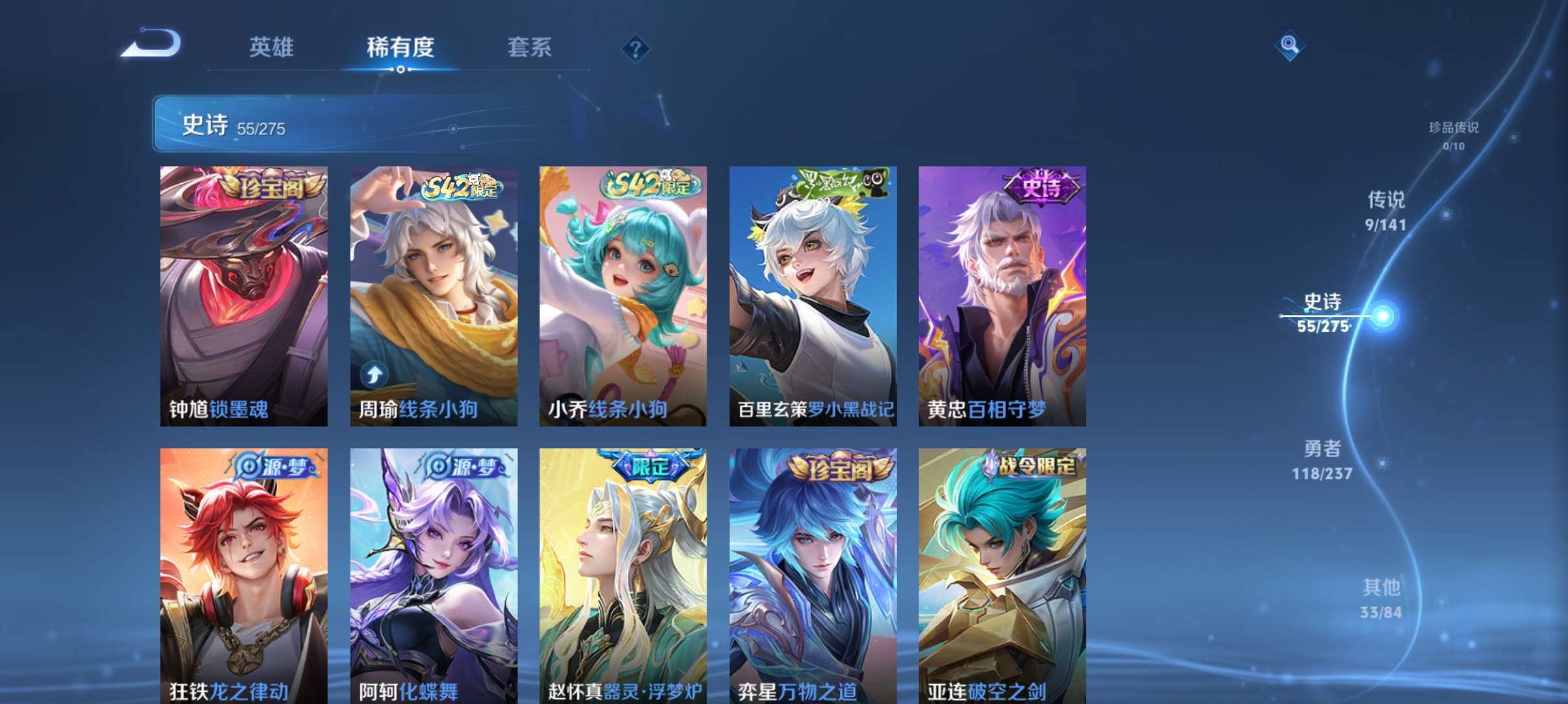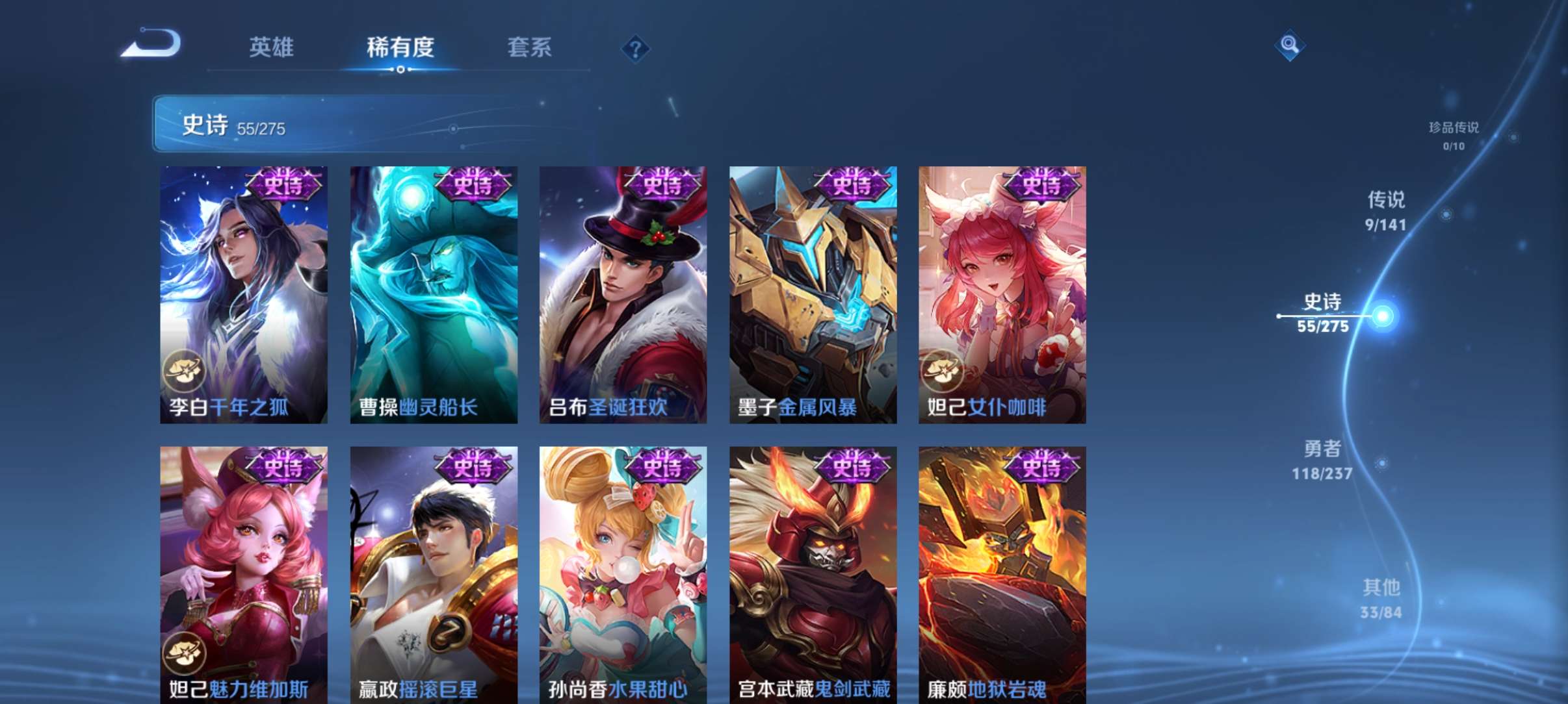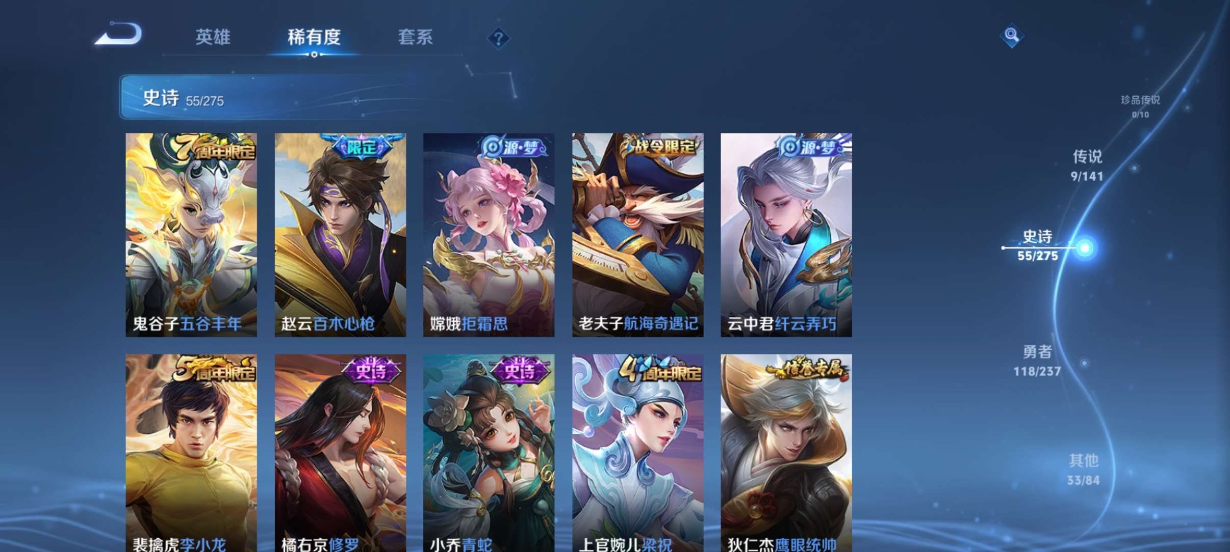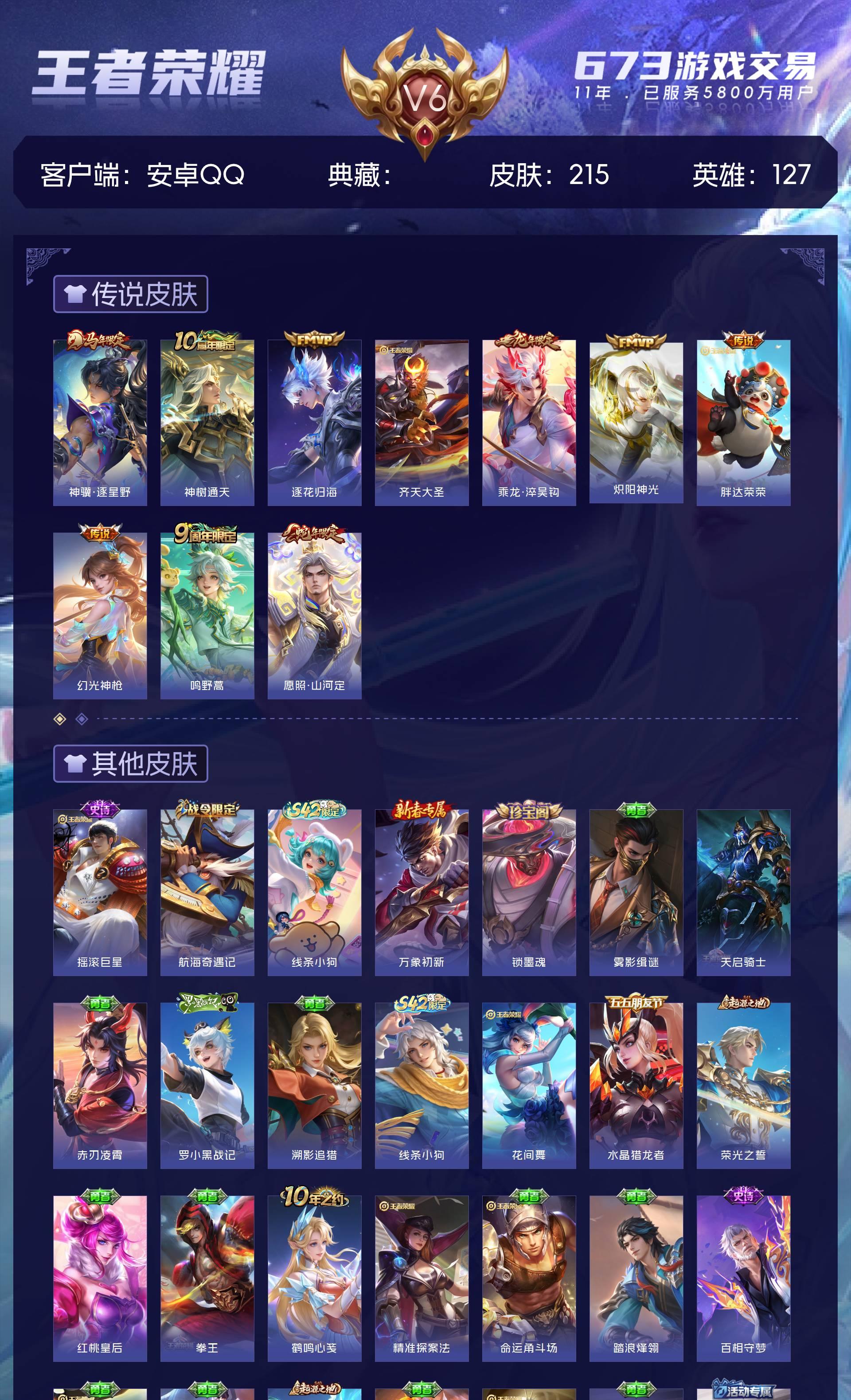 V6 皮肤215 英雄127 至尊星耀 传说10 其他皮肤212