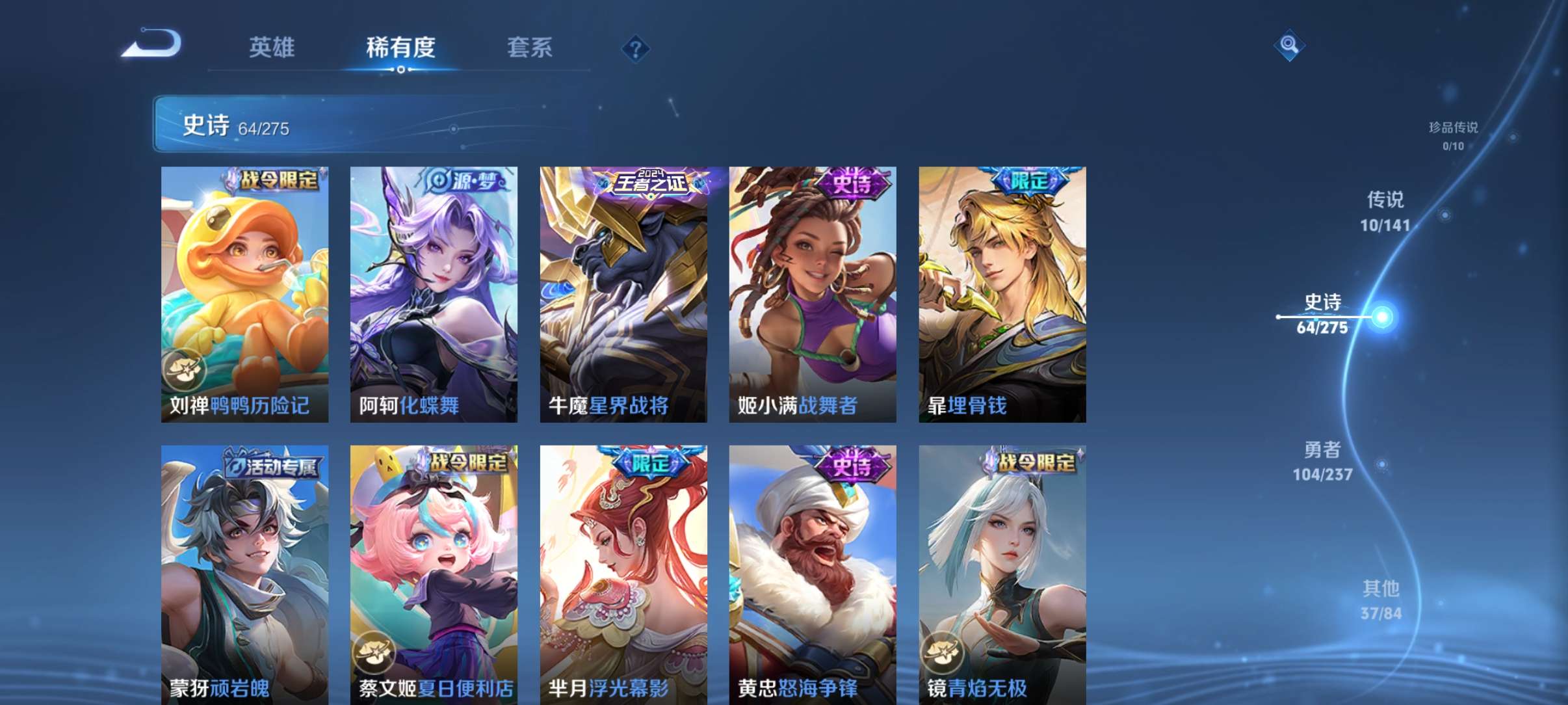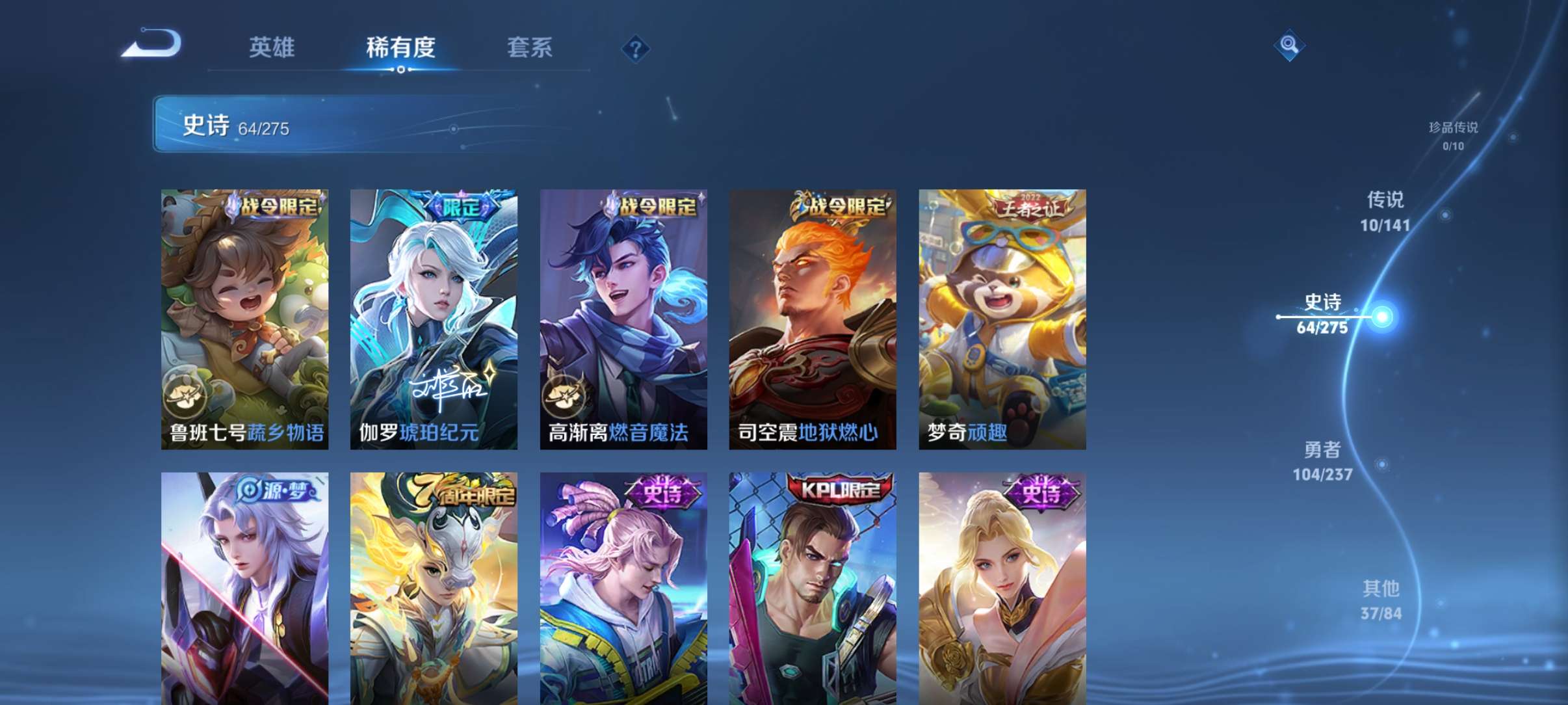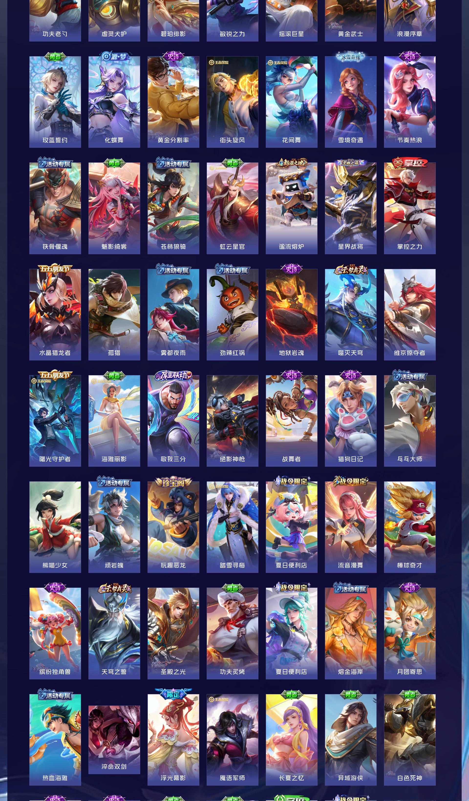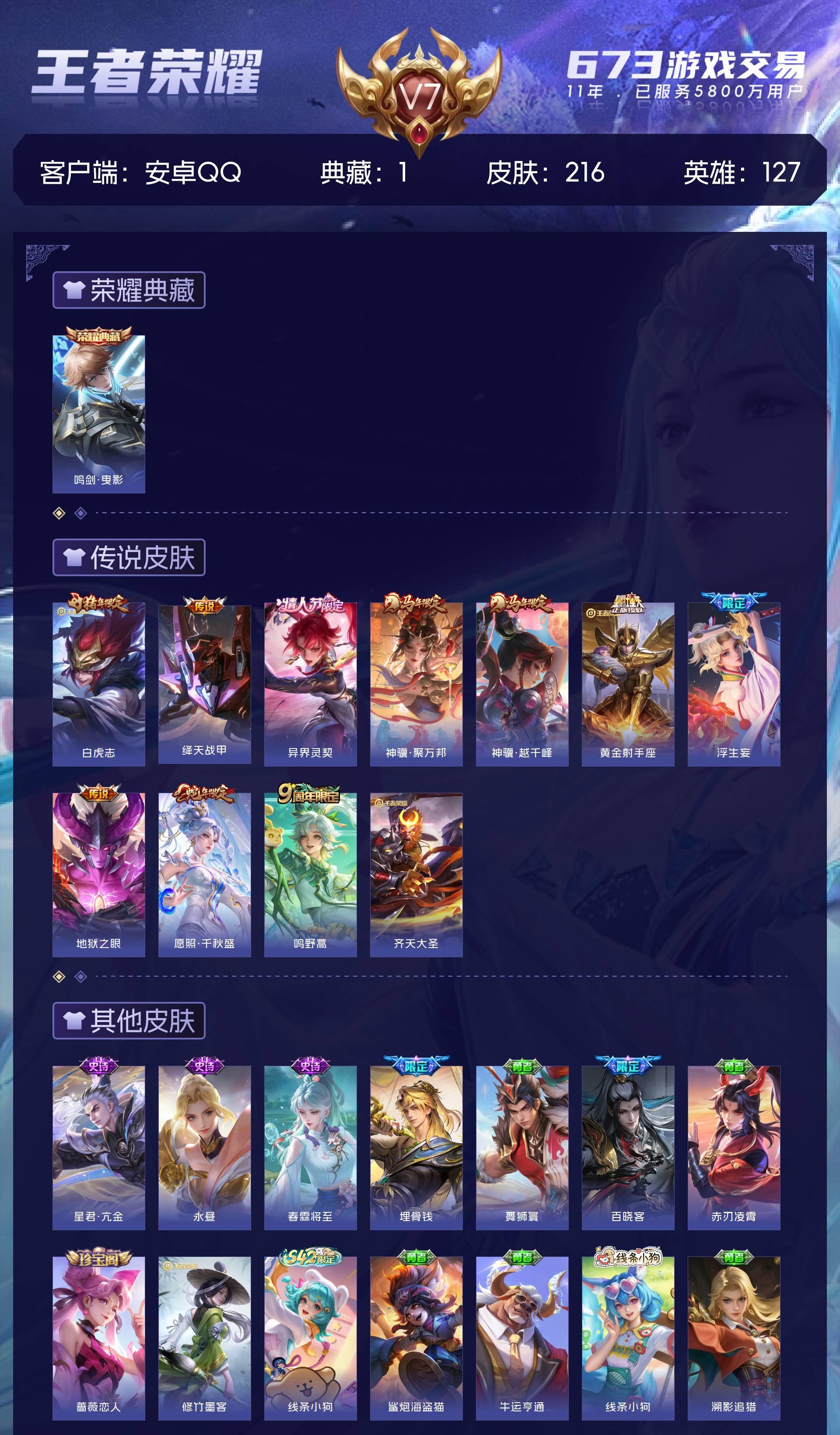 V7 皮肤216 英雄127 最强王者 荣耀典藏1 传说11 其他皮肤211