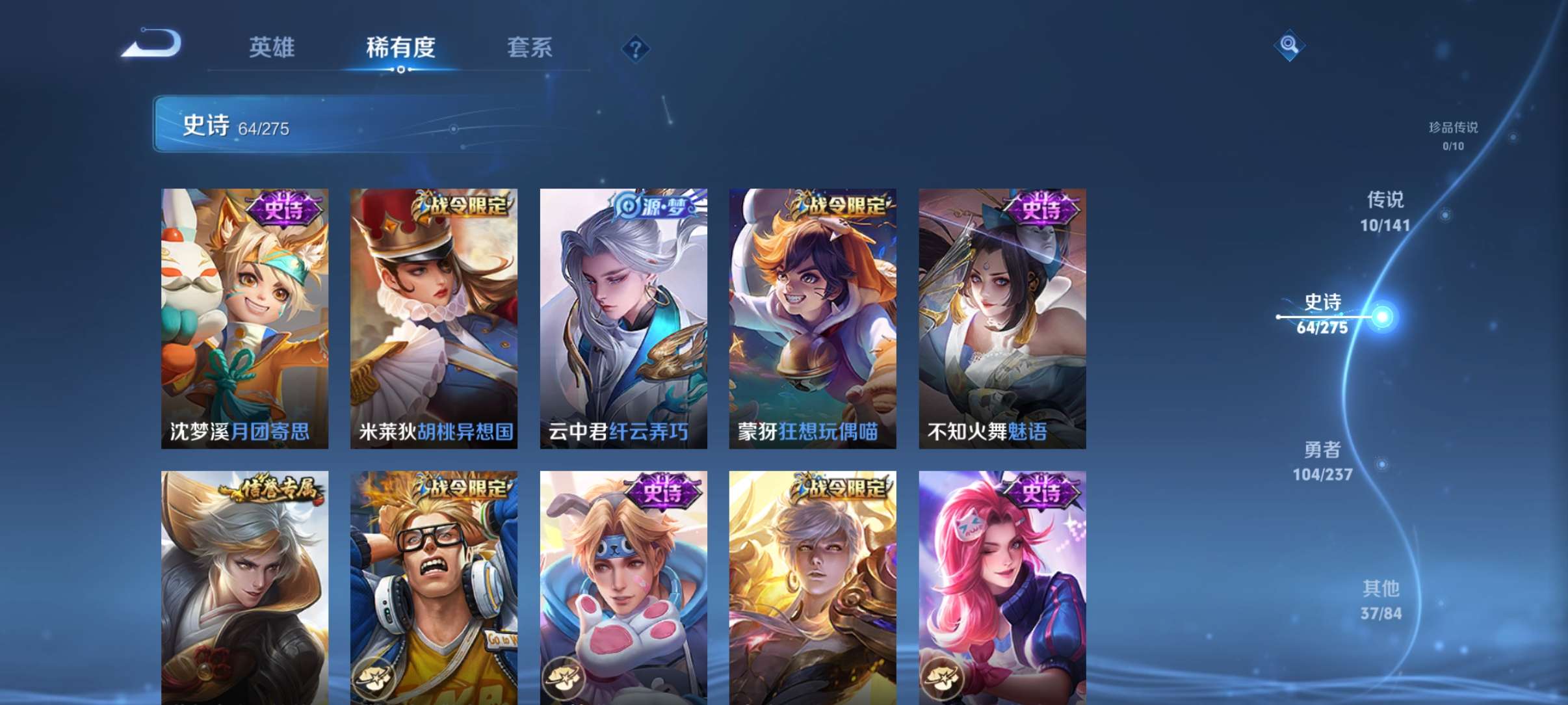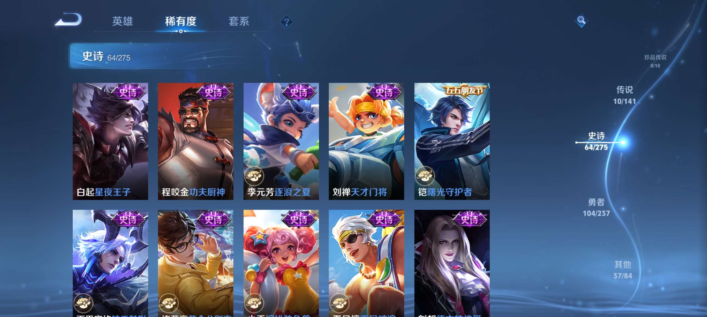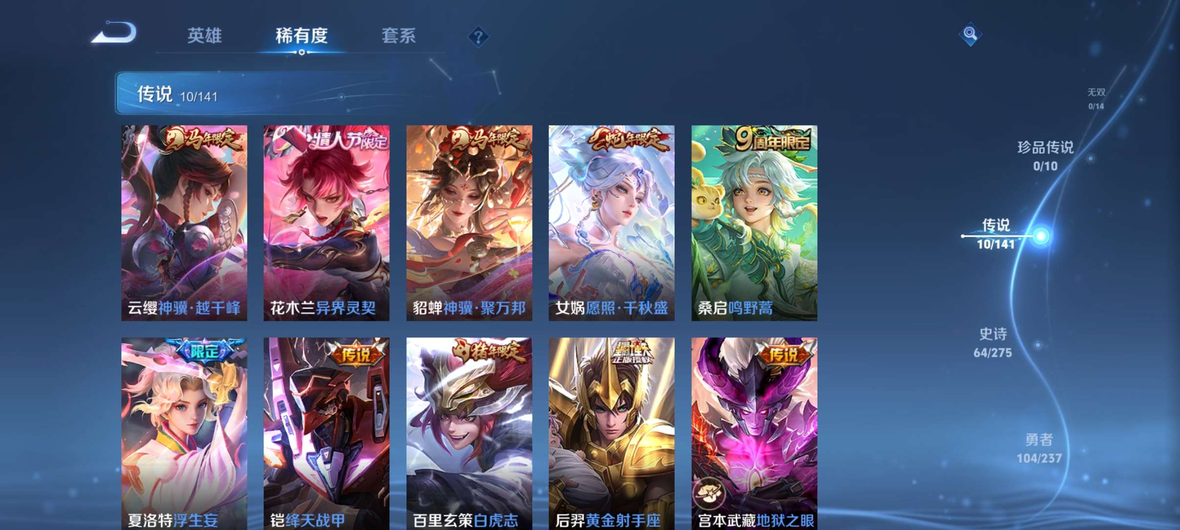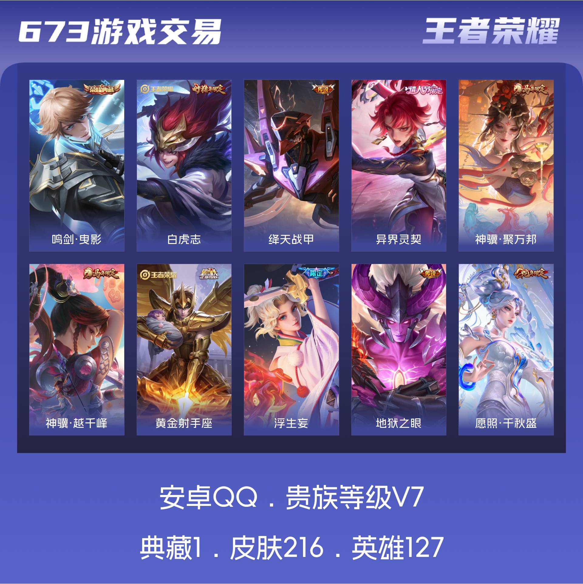 V7 皮肤216 英雄127 最强王者 荣耀典藏1 传说11 其他皮肤211