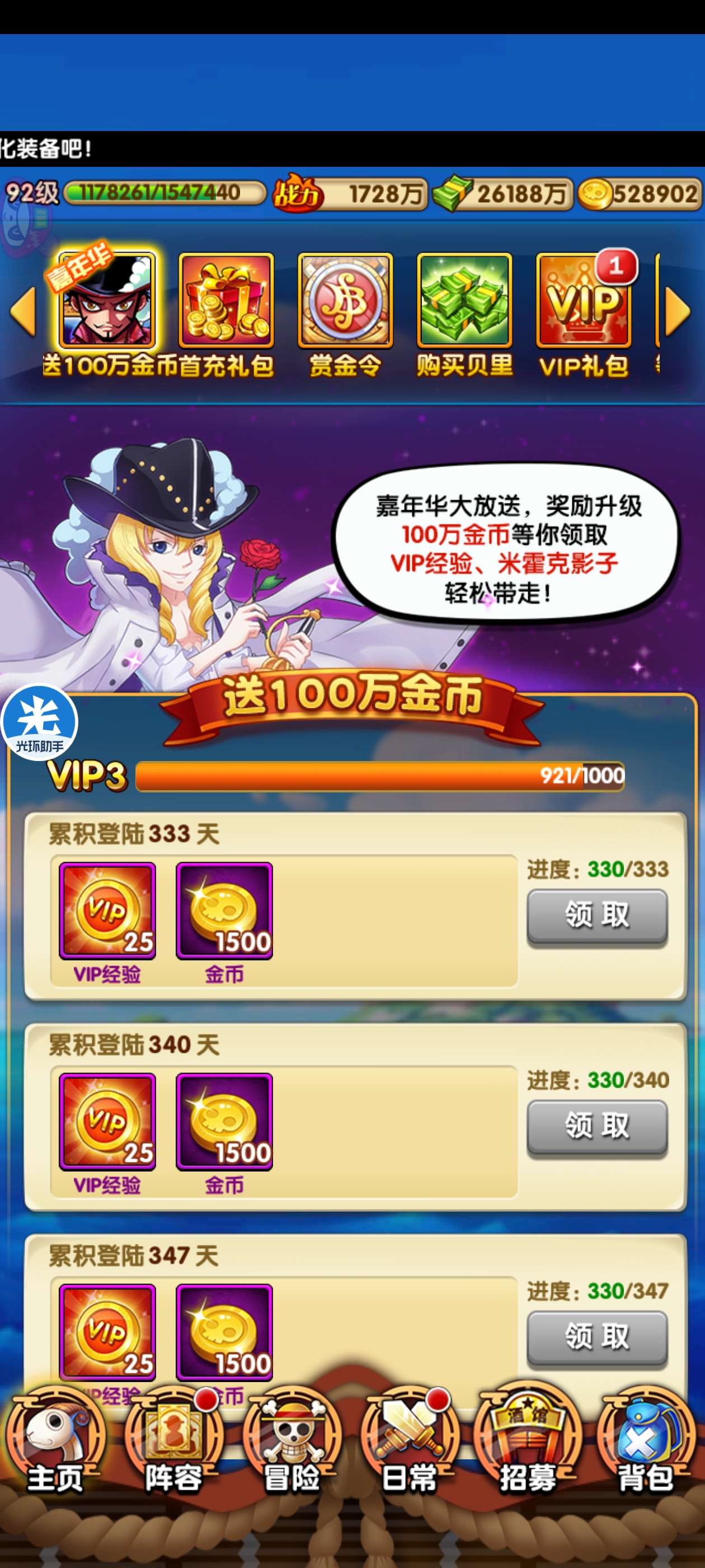 光环助手1690区单人红发已金,超多金币,资源很多基本没怎么养马上v4竞技场养一养可以进100看图片