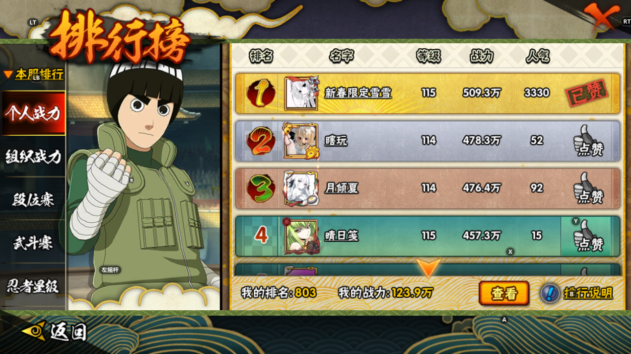 可转苹果/123w战力死扉3S+5A战力123账号等级89忍
