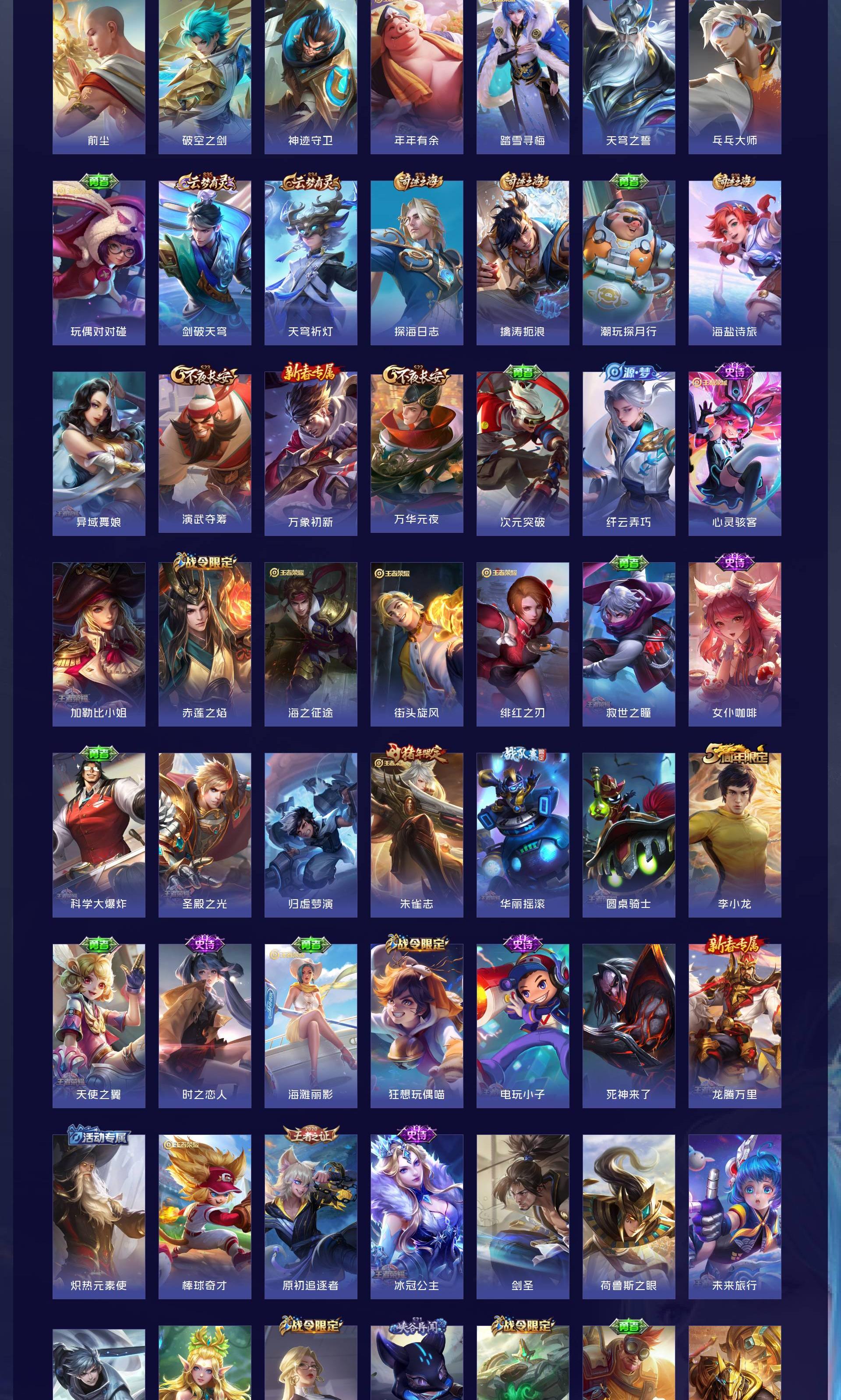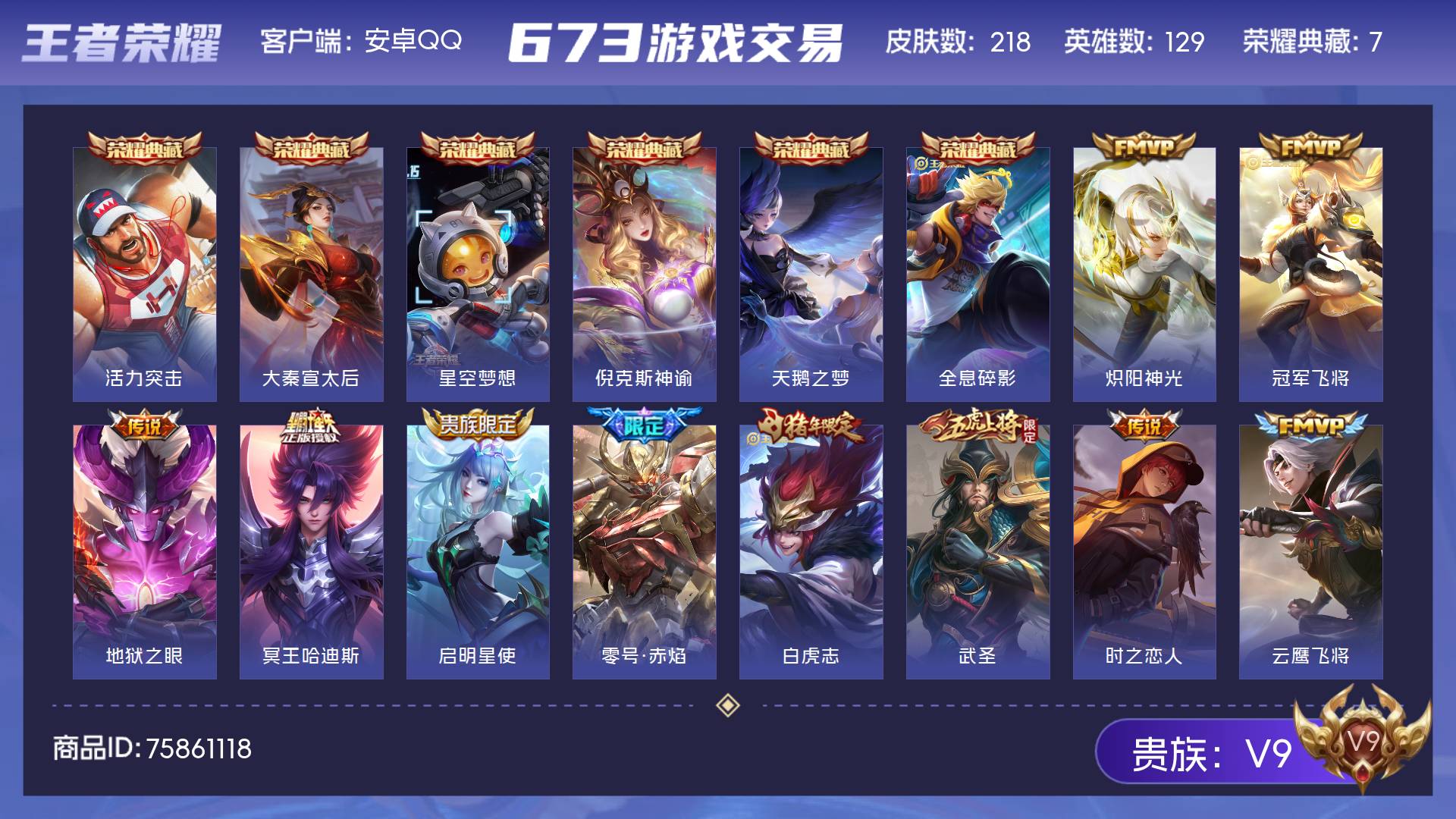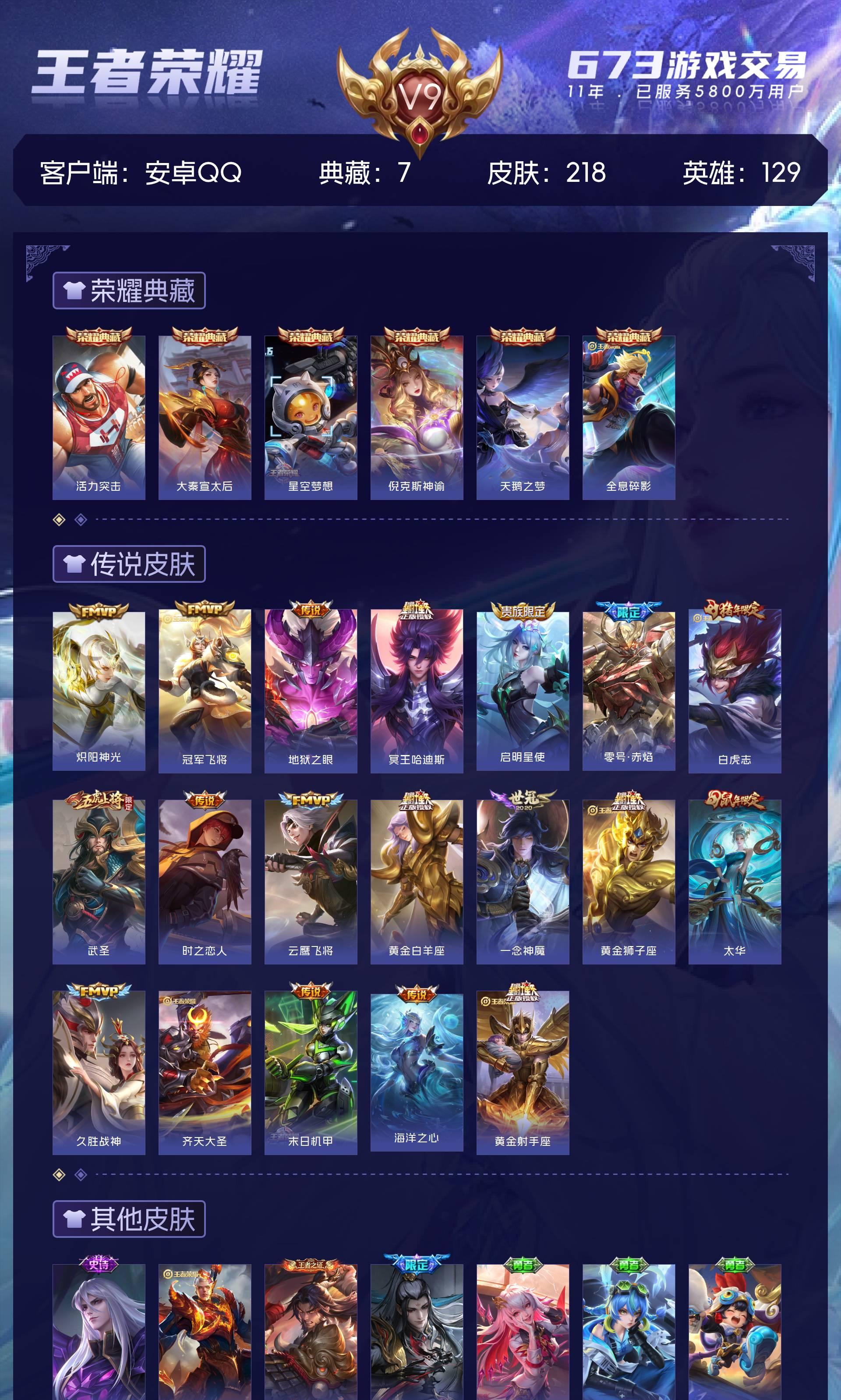 V9 皮肤218 英雄129 无双王者 荣耀典藏7 星传说2 传说19 其他皮肤200