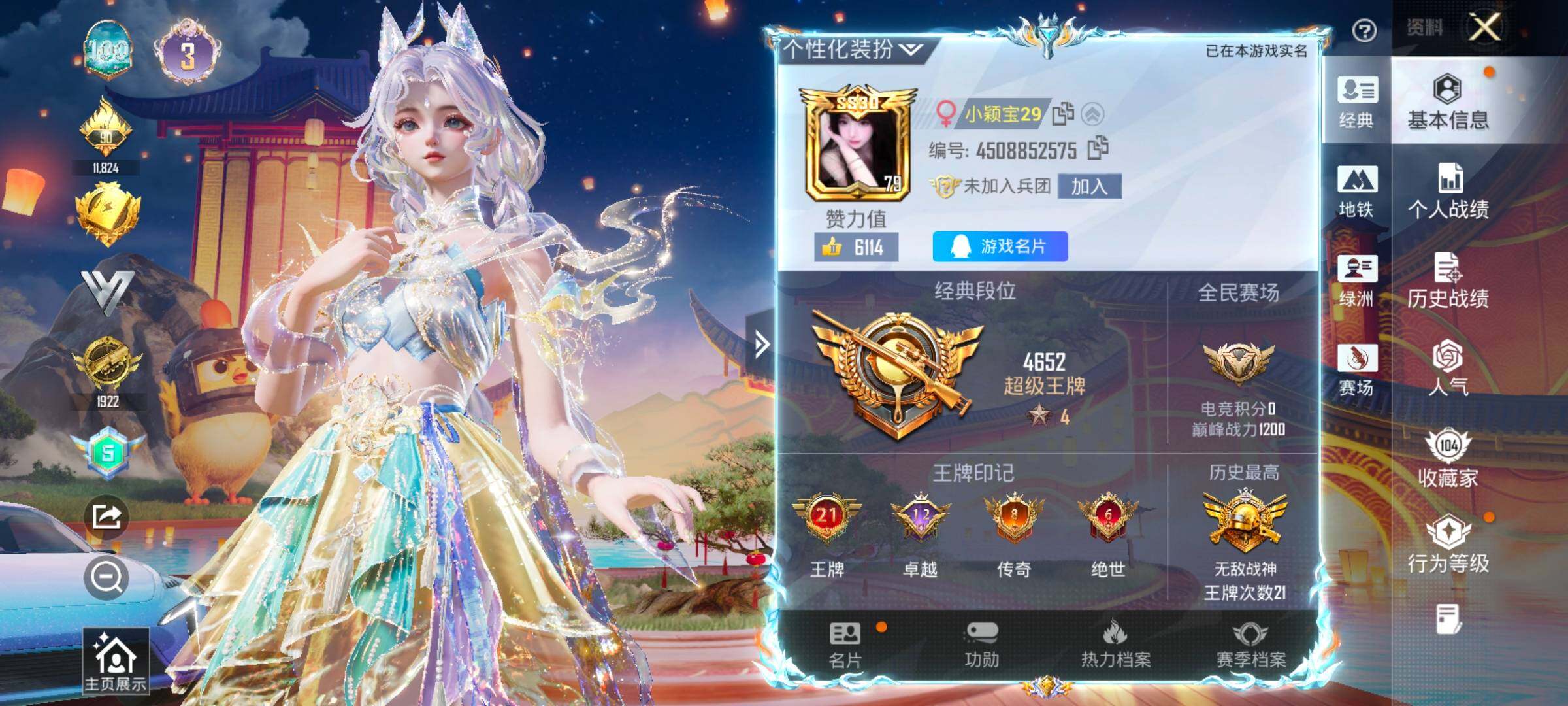 【绝世收藏家!地铁满天赋!战神公主号!战神框 3级仙姬 露米娜 巡查衣 都市 金鞋 小丑 雪国 发光眼罩 猪妹 第五大道 小狐 番茄 马卡龙 兔兔 胖达 8级星梦奇缘AUG 4把计数枪】YXc26736-【可二次】【因赛季更新游戏段付以上号为准!】