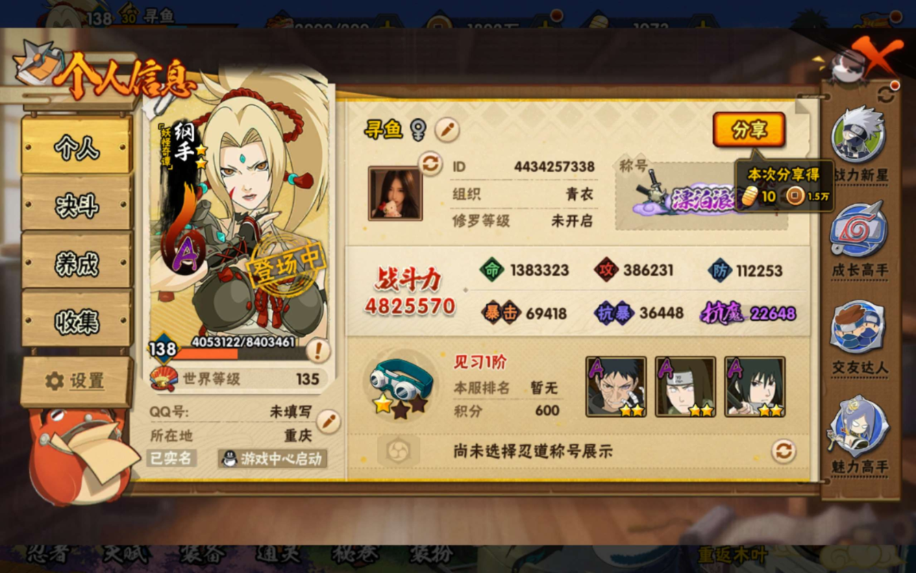 安卓QQ-可二次-v6-新手入坑免肝免氪首选-飘带-S忍者数:8- A忍者数:23