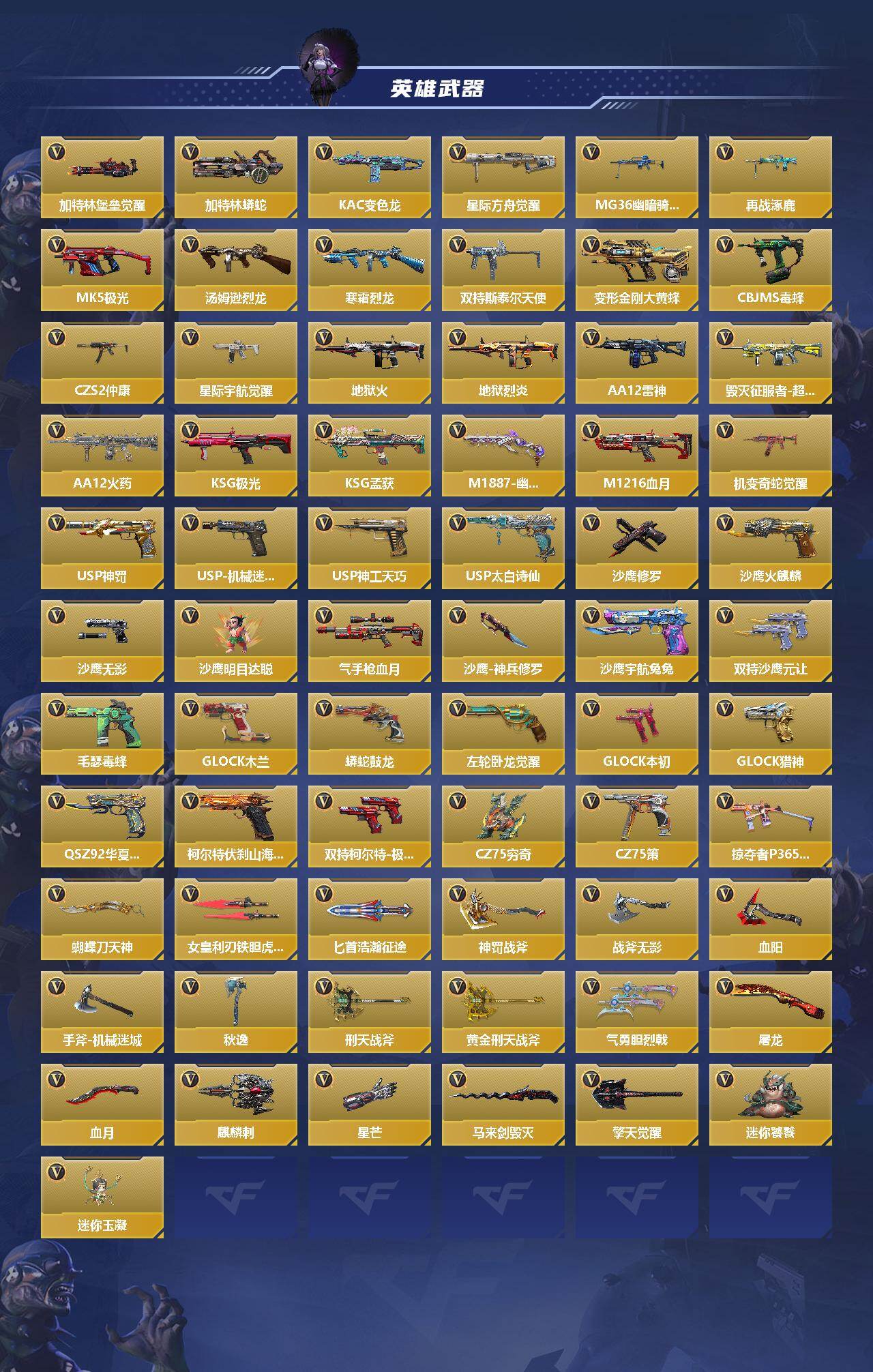 【英雄武器】:AK47-无影,AK47-火麒麟,AK47-麒麟,AK47-机械迷城,AK47-猩红传说,AK4