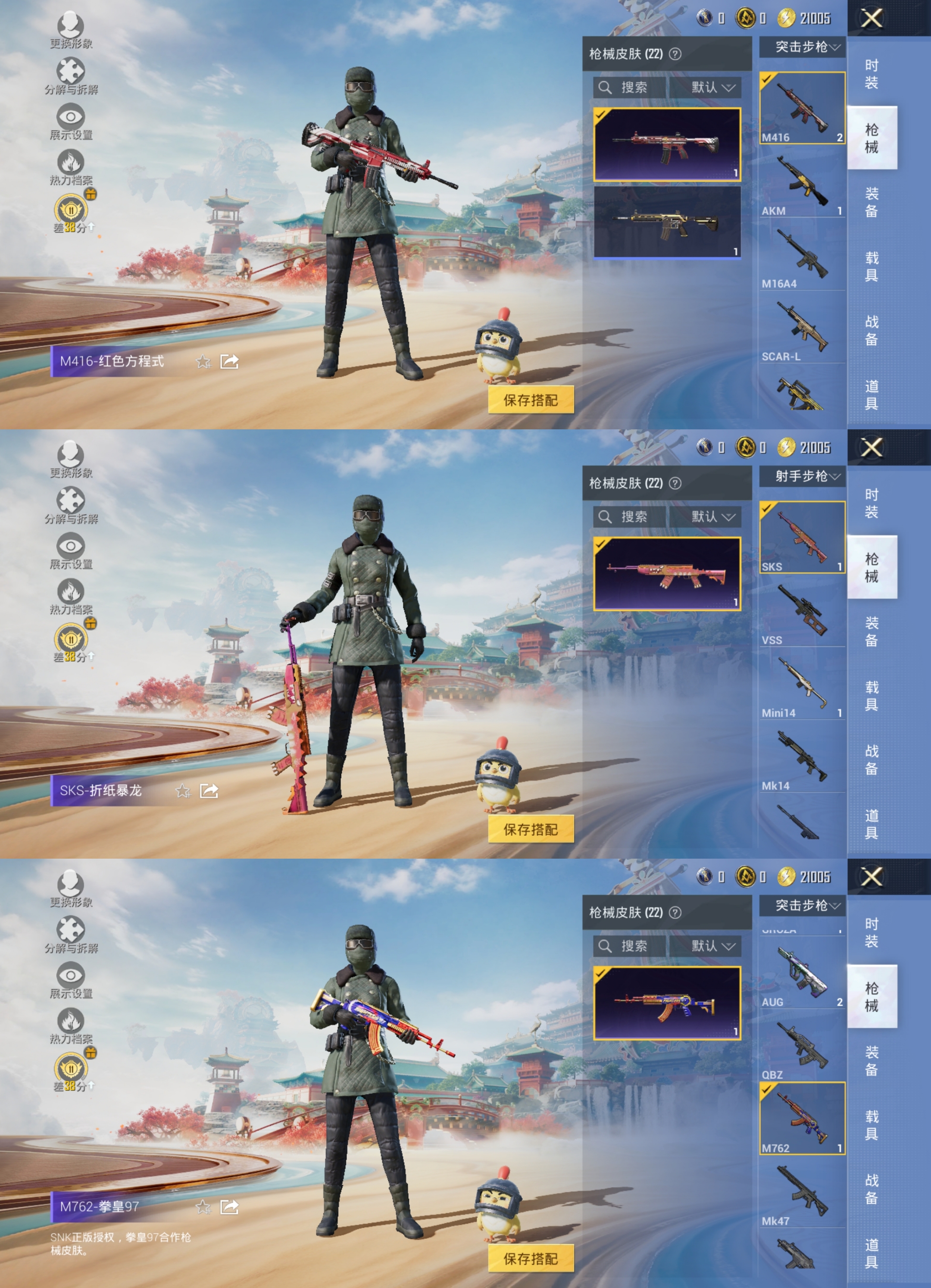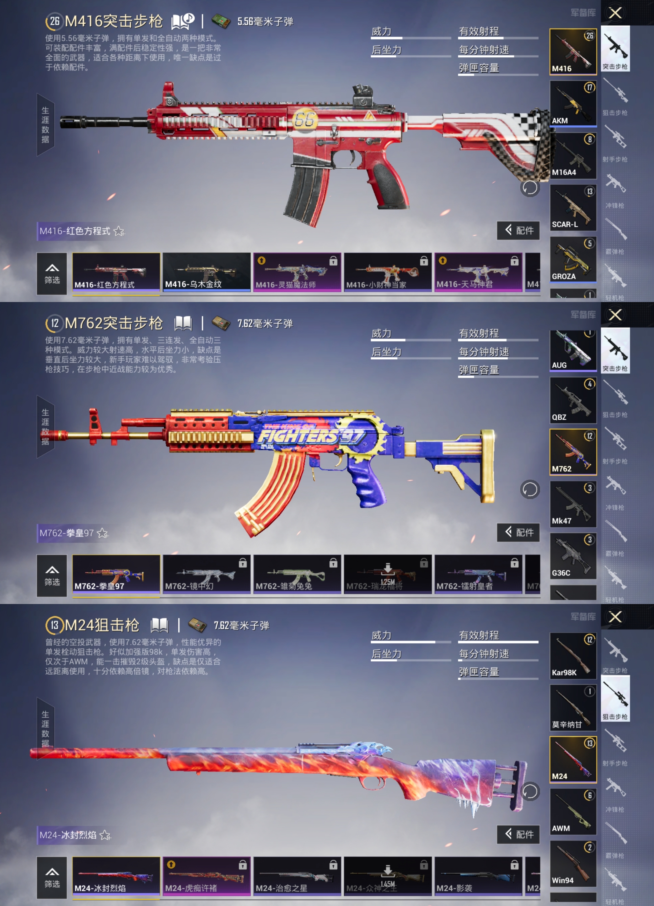 QY430 老六号 老六服 雪山精英 拳皇97八神庵 蔷薇魔法师 2太阳 安卓Q区-7387热力值-27套装-22枪皮【稀有武器皮肤】: M416-红色方程式 M416-乌木金纹 AKM-乌木金纹 GROZA-乌木金纹 AUG-乌木金纹 AUG-魔法学院 M762-拳皇97 M24-冰封烈焰 SKS-折纸暴龙 Mini14-春暖花开 UZI-生命誓言 UMP45-生命誓言 Vector-乌木金纹