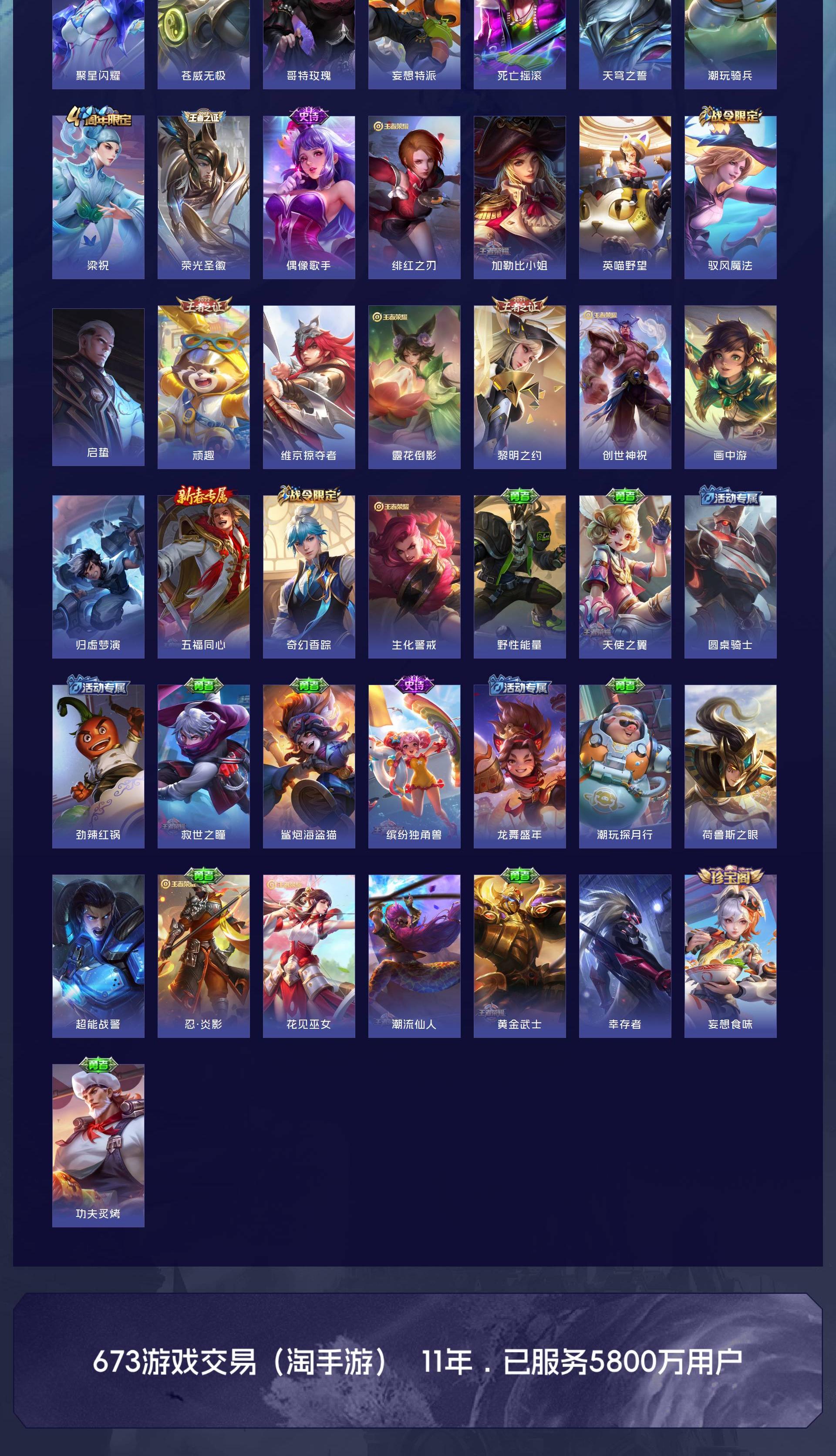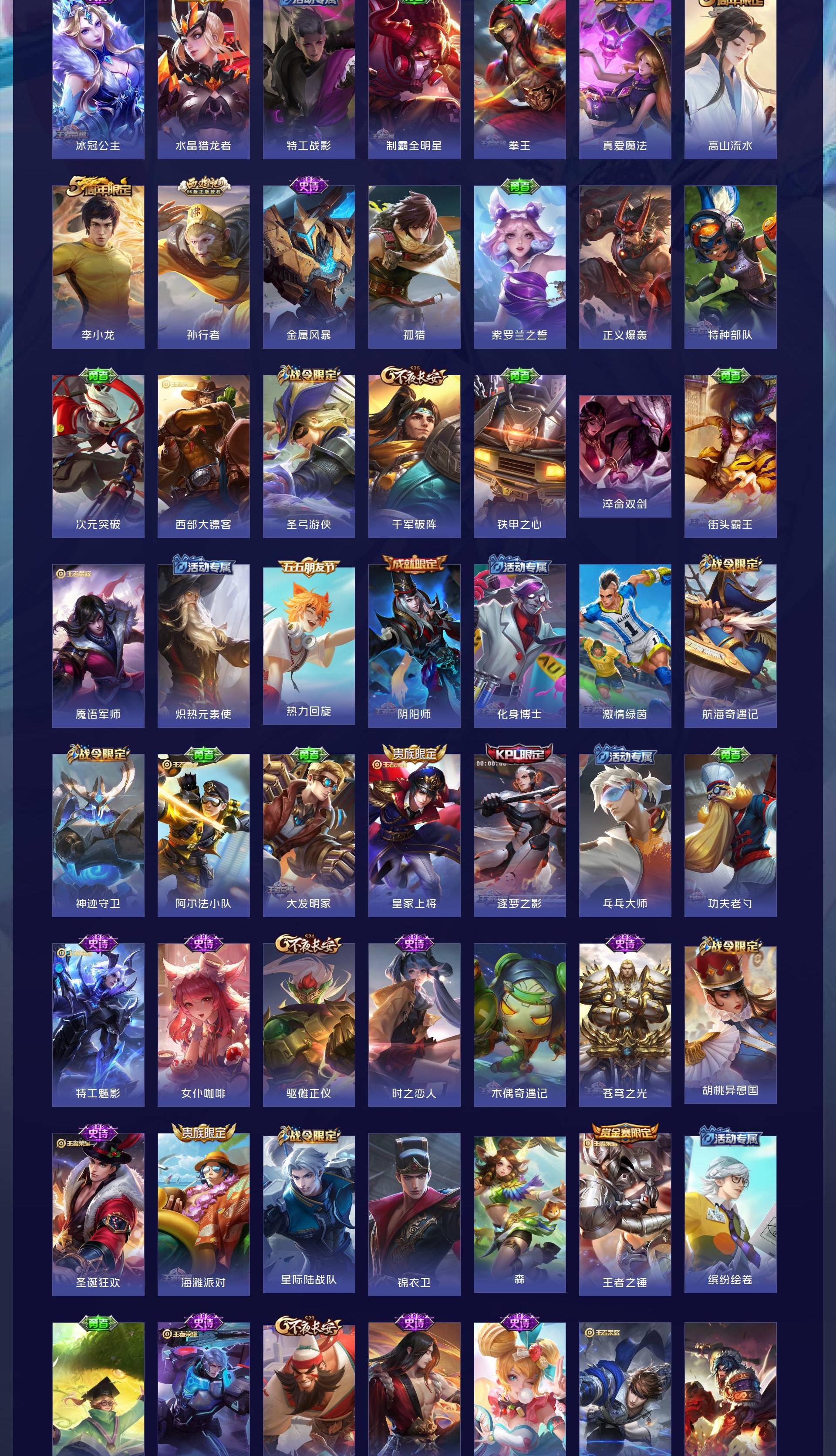 V7 皮肤263 英雄127 最强王者 荣耀典藏1 珍品传说1 传说8 其他皮肤260