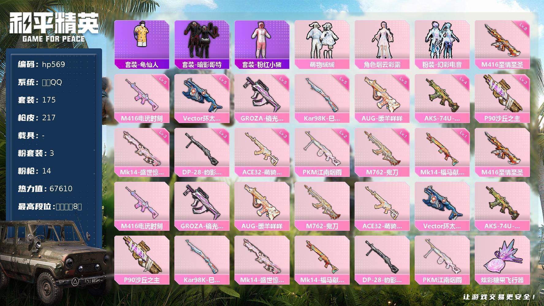 苹果 手Q-3粉装-14特效枪-0载具-4粉色飞行器-676