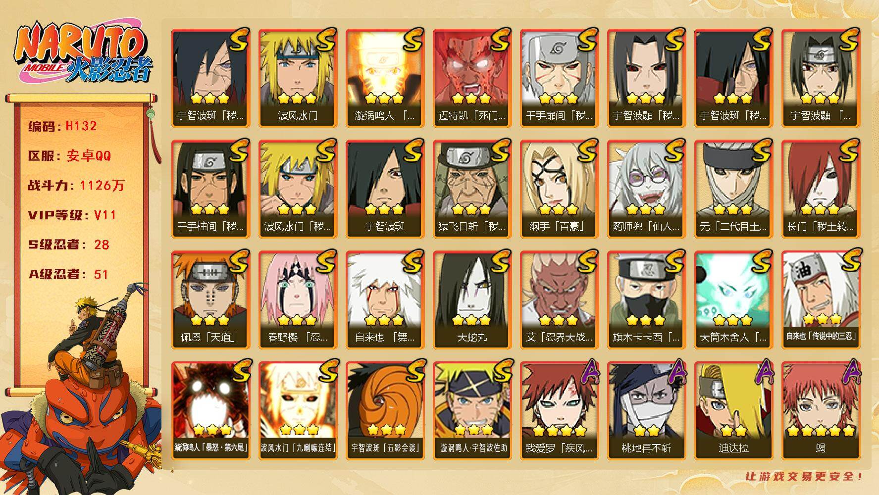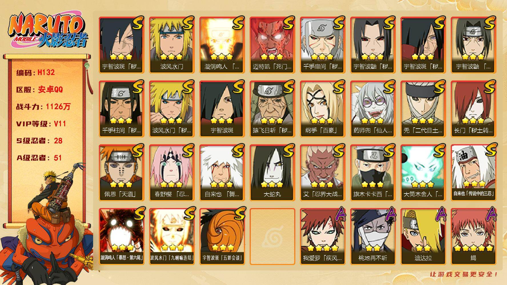 VIP11,1126W战力,28a,51a,连体王者274皮