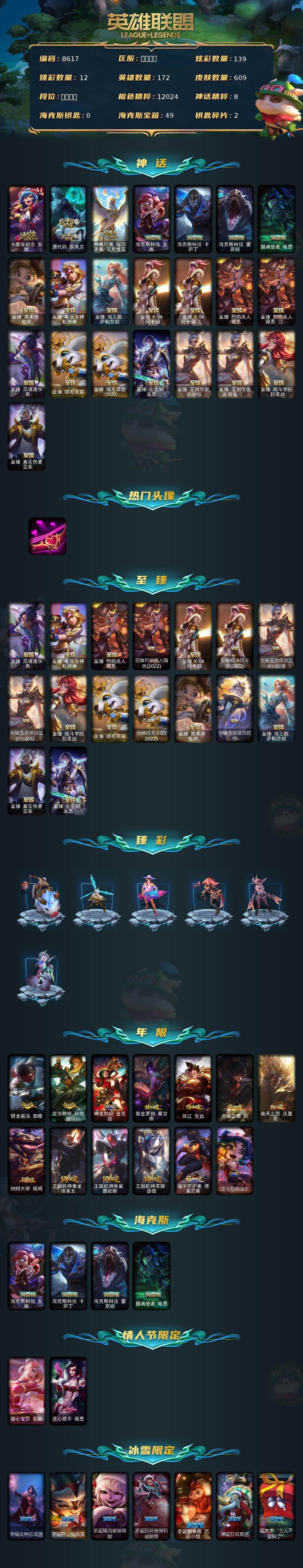 未定级段位-172英雄-609皮肤-139炫彩-0终极-23神话