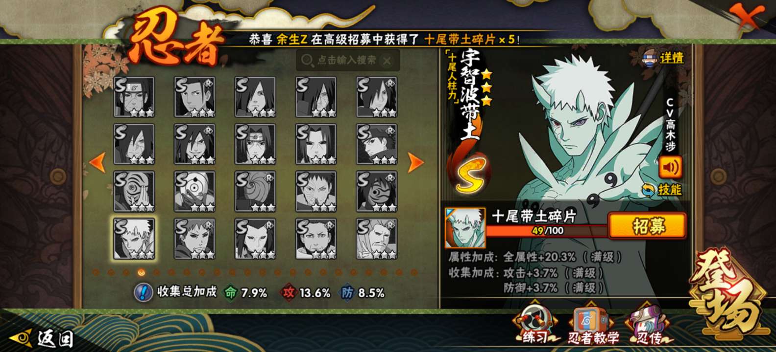17万多金币加1000多张高招卷新区十尾人柱力带土首付已给