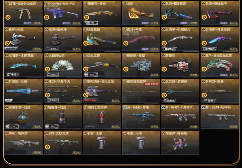 【安卓QQ】 角色等级:巅峰大元首 【角色】关小雨、云悠悠、晴雅、零-水下丽影、乔月、职场灵狐-赛事经理、葵、零-新生、月神-X、夏日灵狐-X、炽天使-X、龙妹-X 【武器】王者之蝶、王者之影、王者之心、王者之狱、王者之魂、AK47-元让、M4A1-星象、MK47-仁德、KSG-孟获、CZS2-仲康、CZ75-策、柯尔特-仲达、双持GLOCK18-本初、虎头湛金枪、思召剑、铁锹-孟德、虚空之槌-妙才、M200-幻神、AWM-天龙、巴雷特-雷神、巴雷特-极光、98K-星神、98K-黑骑士、M4A1
