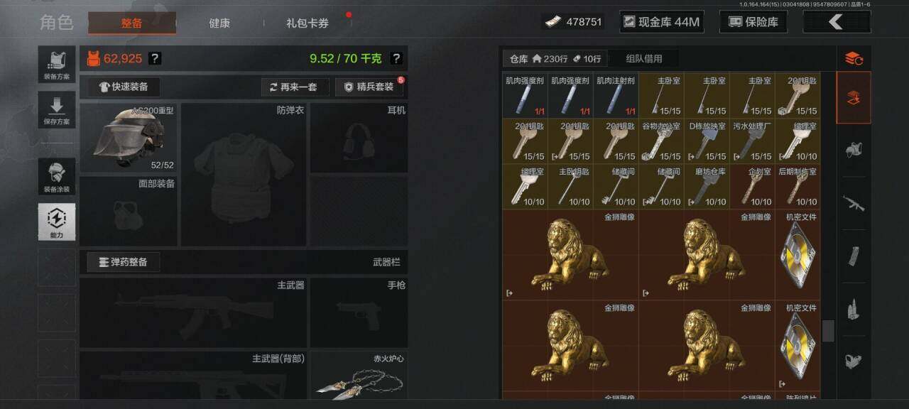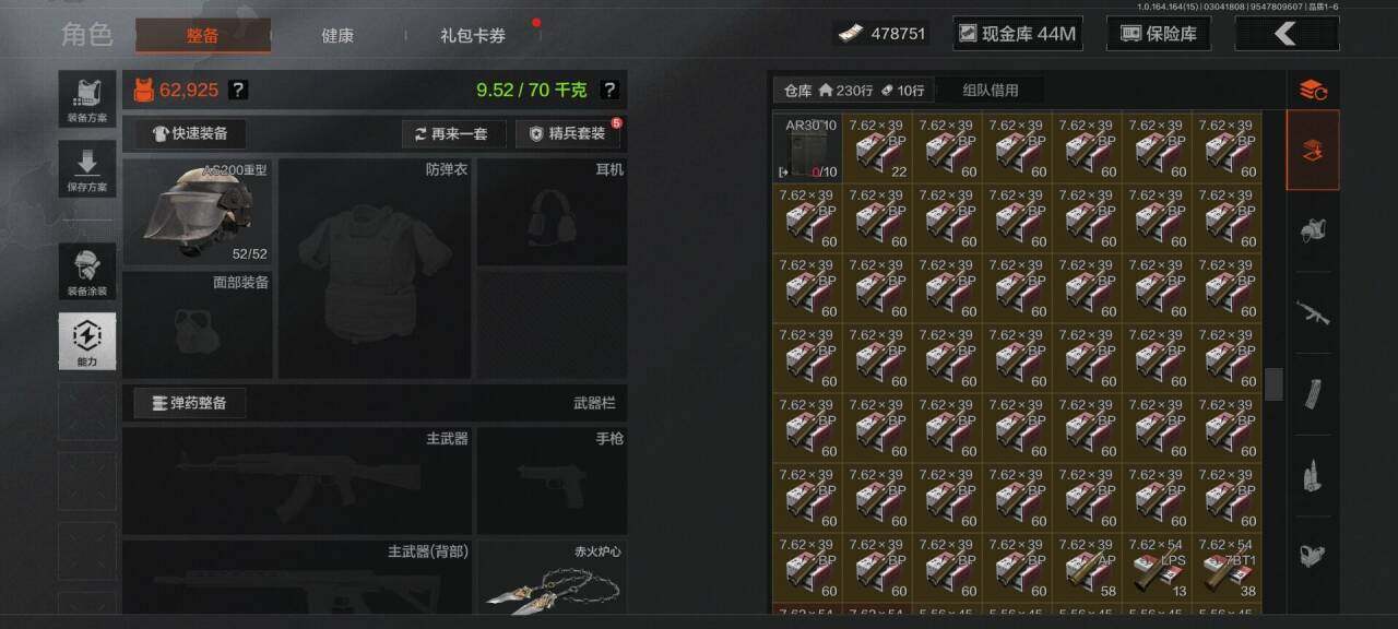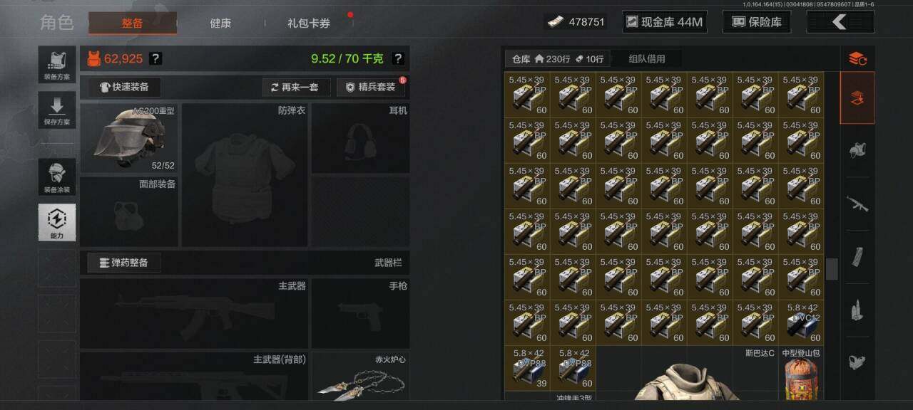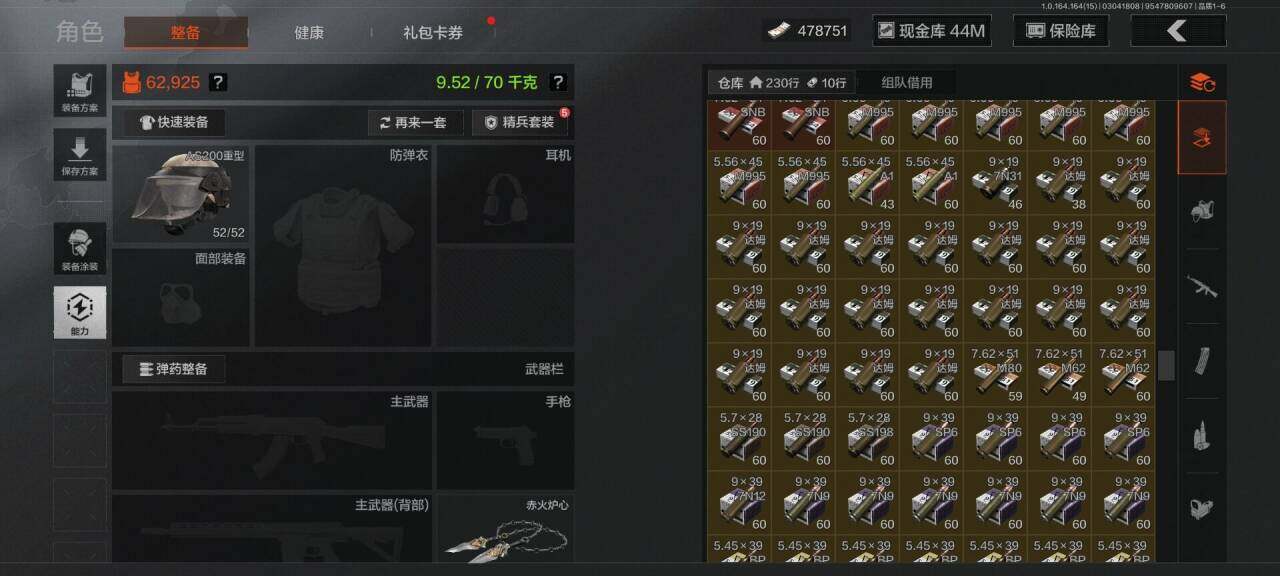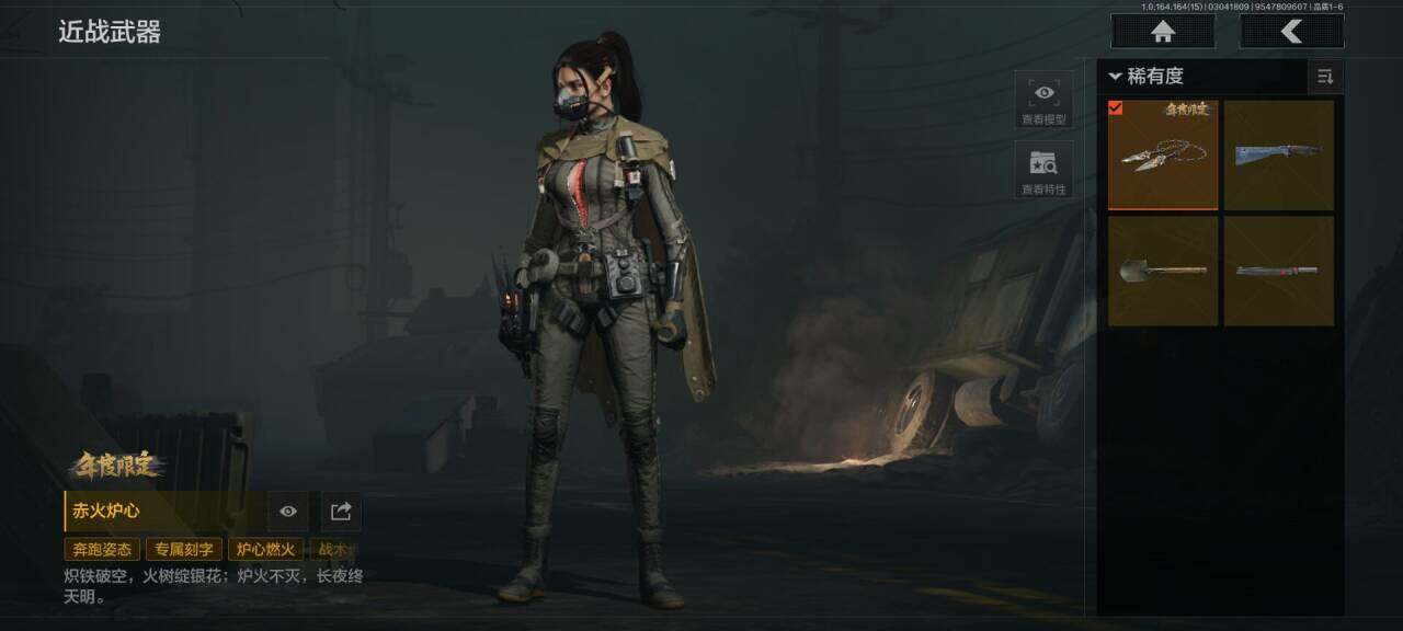 段位:专家/仓库价值(百万):89/赤火炉心/霜狼生存刀/工兵铲/来战开山刀/