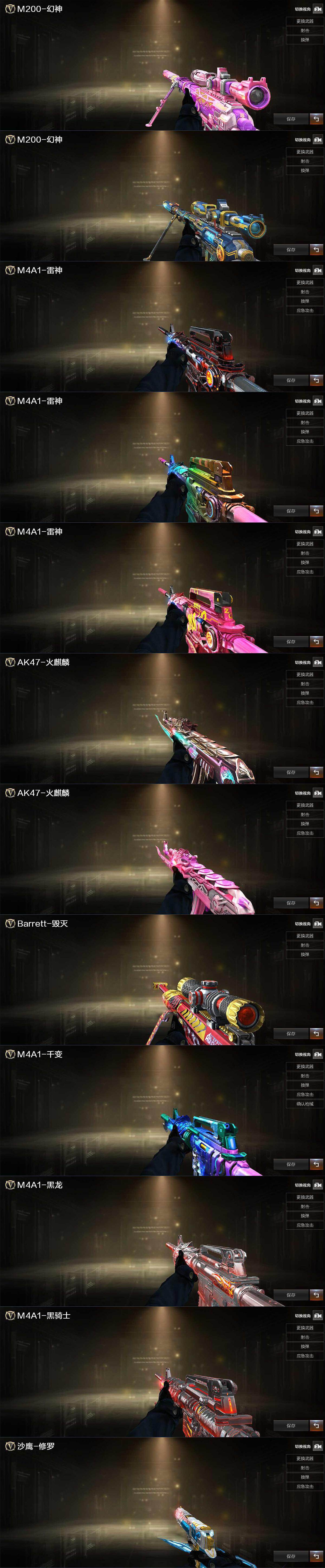 【热门武器】:QBZ03-金色蔷薇,M14EBR-玄武,M4A1-青龙,M200-幻神,沙鹰-修罗