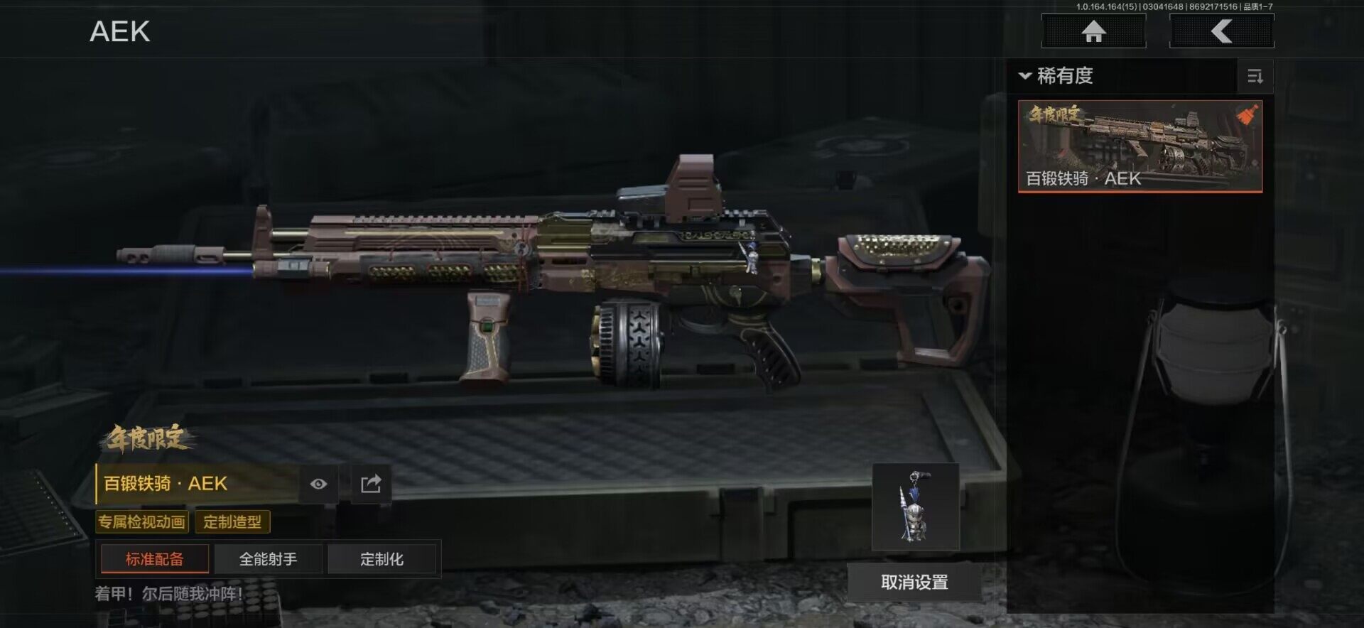 【AQZ247】等级:30/段位:王牌/仓库价值(百万):12.9/赤火炉心/工兵铲/千炼铁阵MK14/百锻铁骑AEK