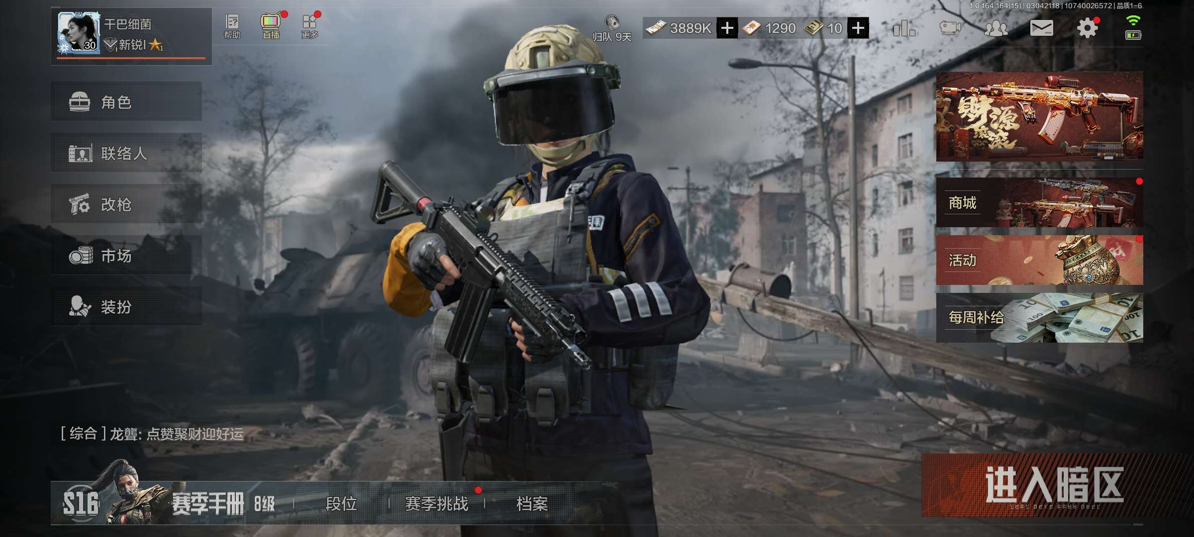 有蛇年限定刀皮号里还有将近400万 有很多枪和物资 段位最高暗区传说。