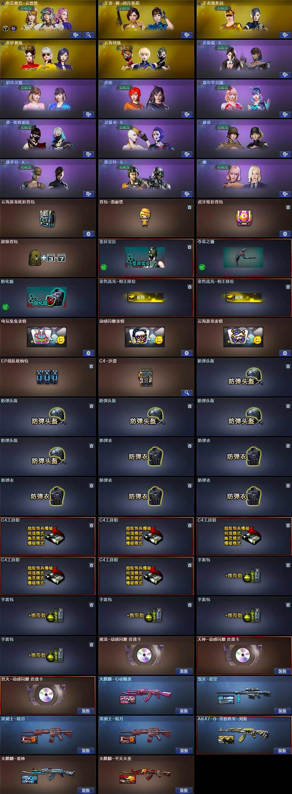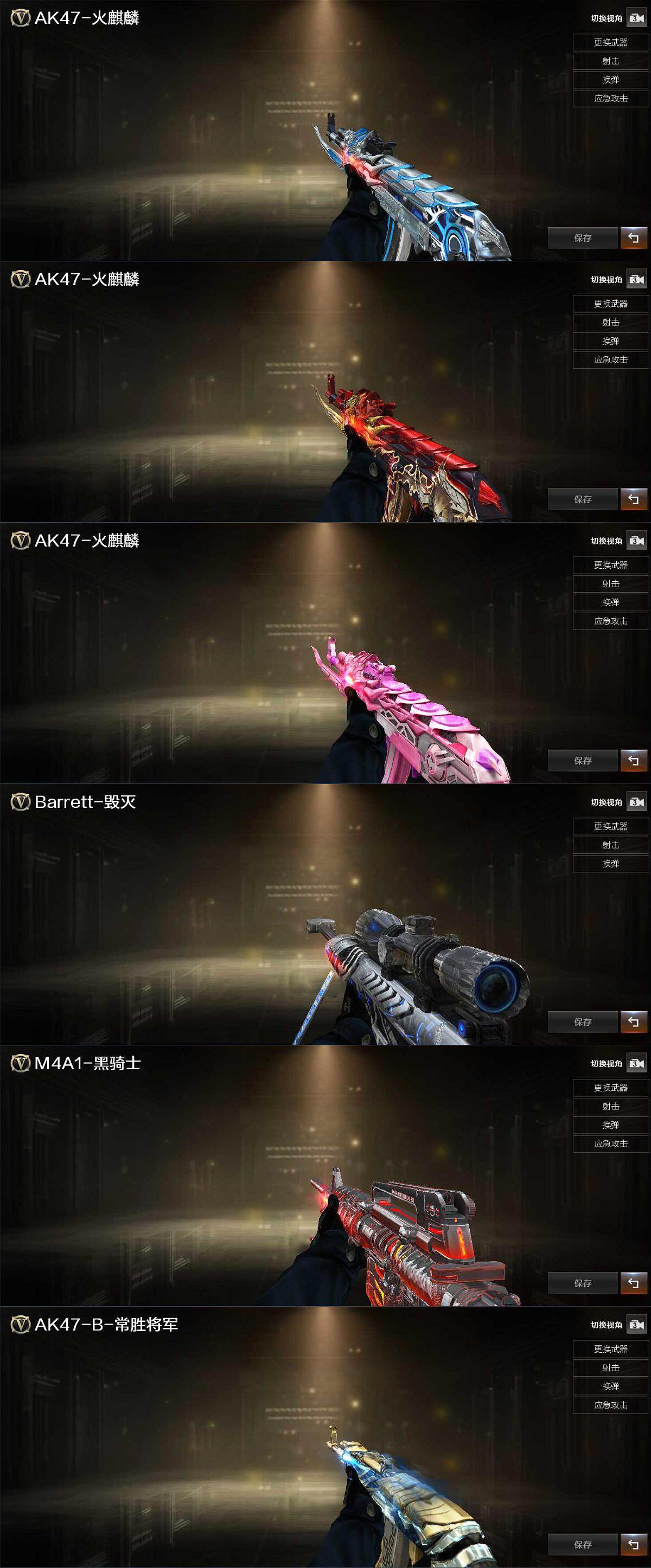 【皮肤】:火麒麟-雷神,火麒麟-平天大圣,火麒麟-心动糖果,毁灭-星空,黑骑士-暗月*2,AK47-B-常胜将军-刘备