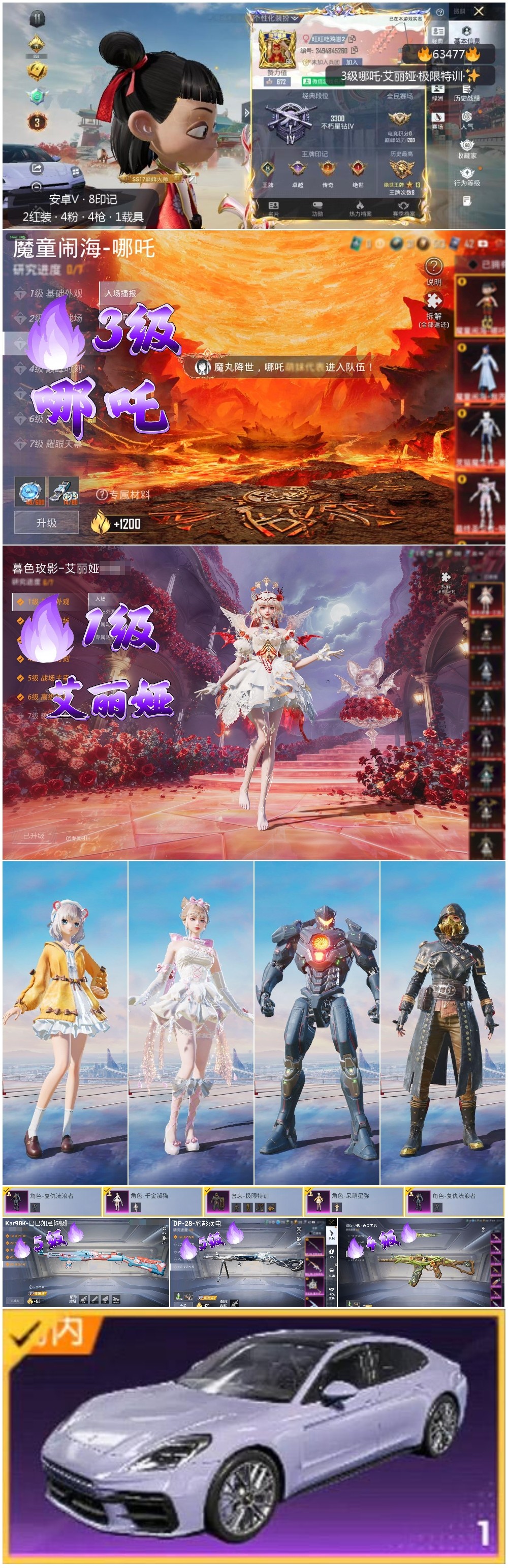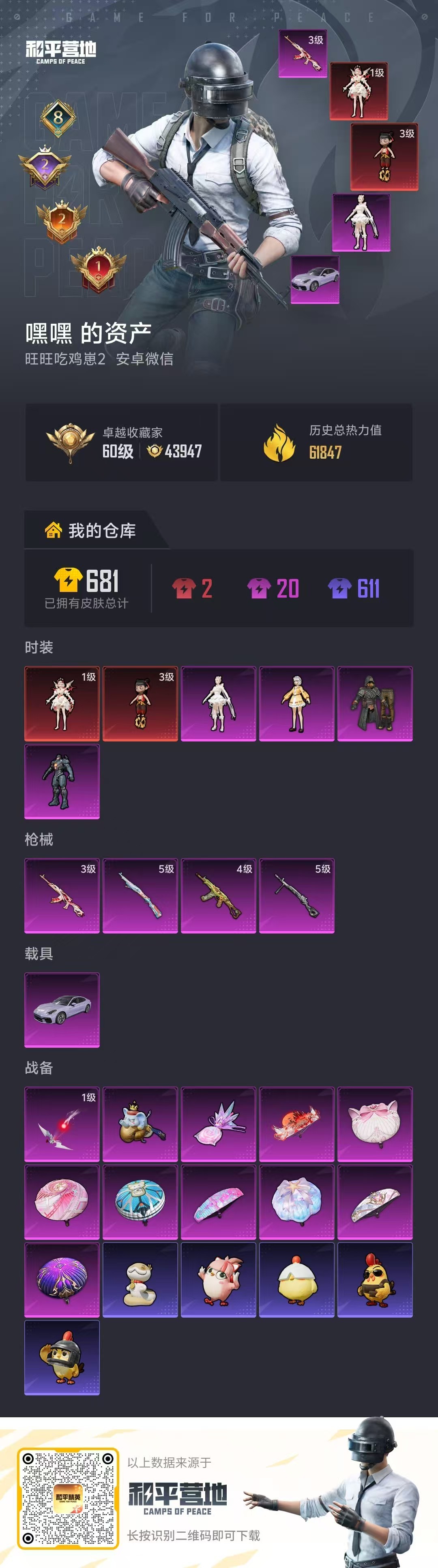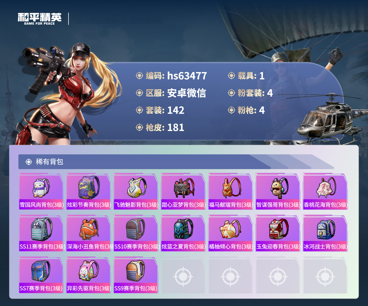 hs63477 安卓微-8王牌印记-2红装-4粉装-4特效枪-1载具-61847热力值-142套装