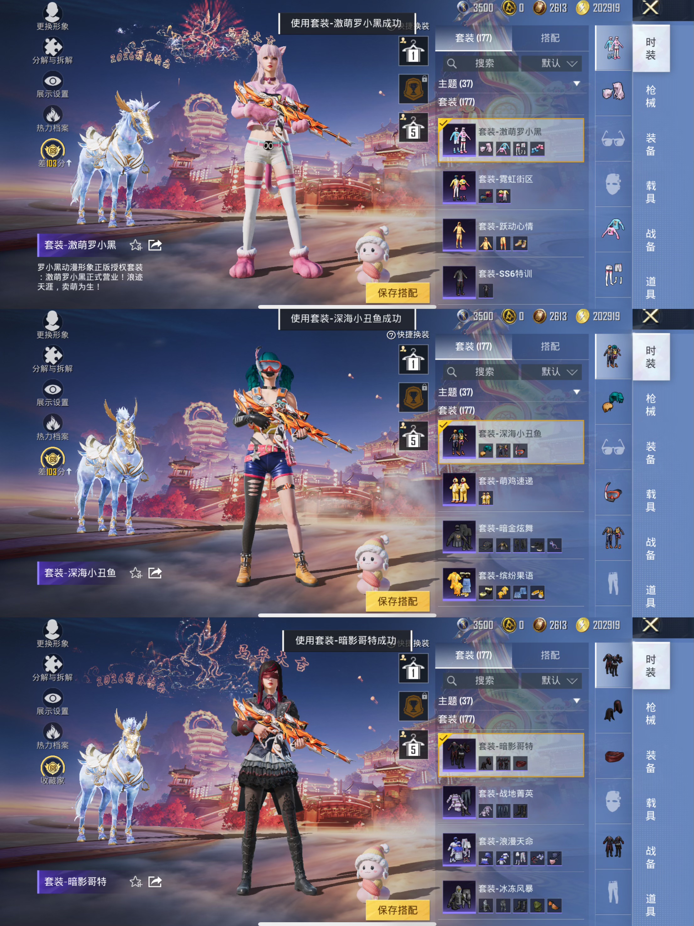 【AUG-星梦奇缘3级 2载具-7粉装-4特效枪 至情至圣9级 巡查衣 深海小丑