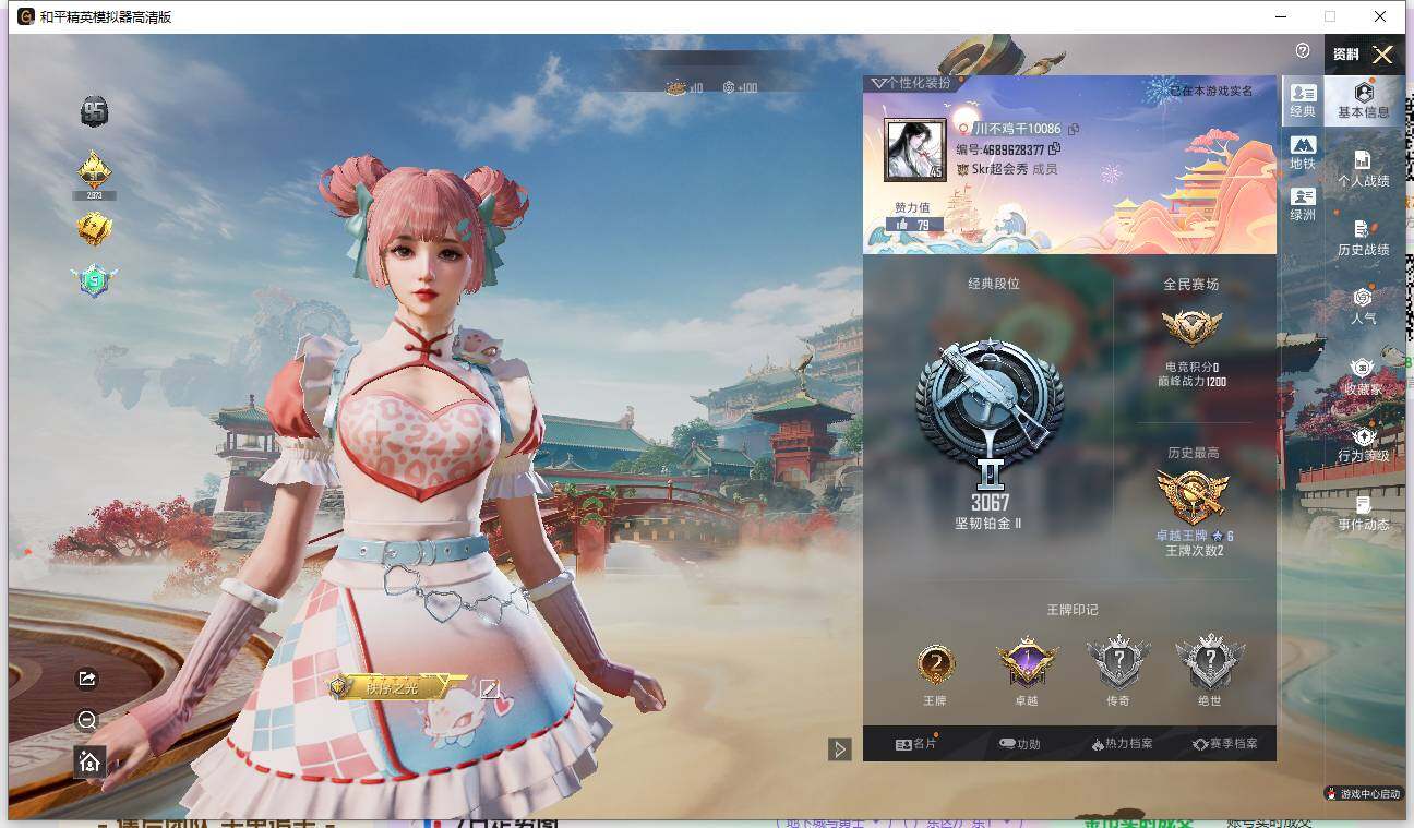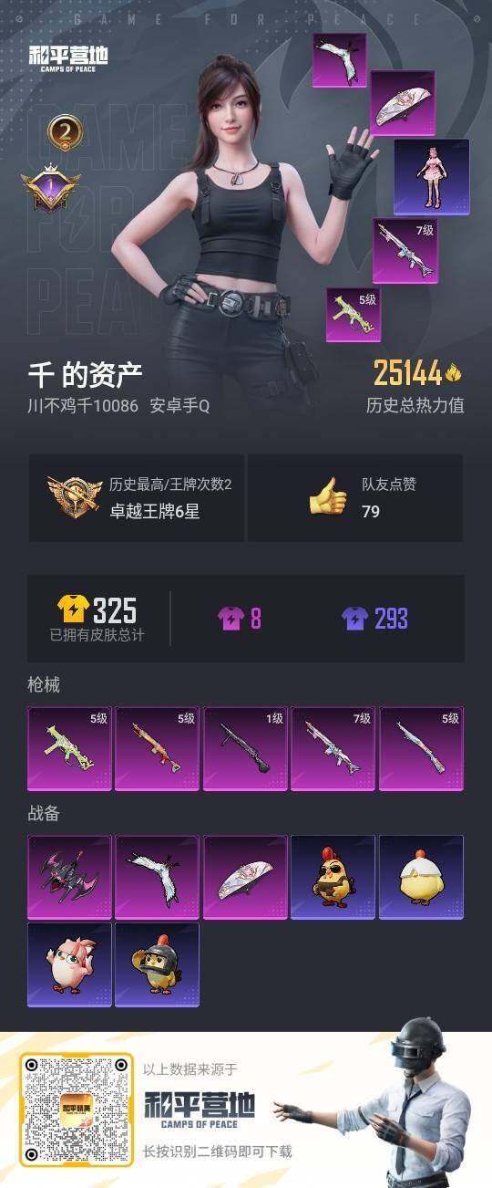 地铁满天赋 安卓 手Q-0粉装-5特效枪-0载具-2粉色飞行器-25144热力值-2王牌印记-57套装-96枪皮【粉色枪皮等级】:UMP45-萌骑冒险(五级),Kar98K-巳巳如意(五级),Mk14-精灵梦叶罗丽(七级),Mk14-福马献瑞(五级),DP-28-豹影疾电(一级)【粉色枪皮】:UMP45-萌骑冒险,Kar98K-巳巳如意,Mk14-精灵梦叶罗丽,Mk14-福马献瑞,DP-28-豹影疾电【粉色飞行器】:星之彼岸飞行器,天之羽翼飞行器