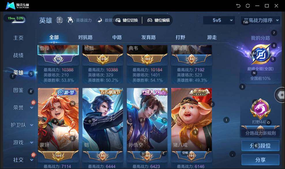 V9-最强王者段位-128英雄-420皮肤-4典藏皮肤-1无双-4星元-1珍品传说-50传说-121史诗