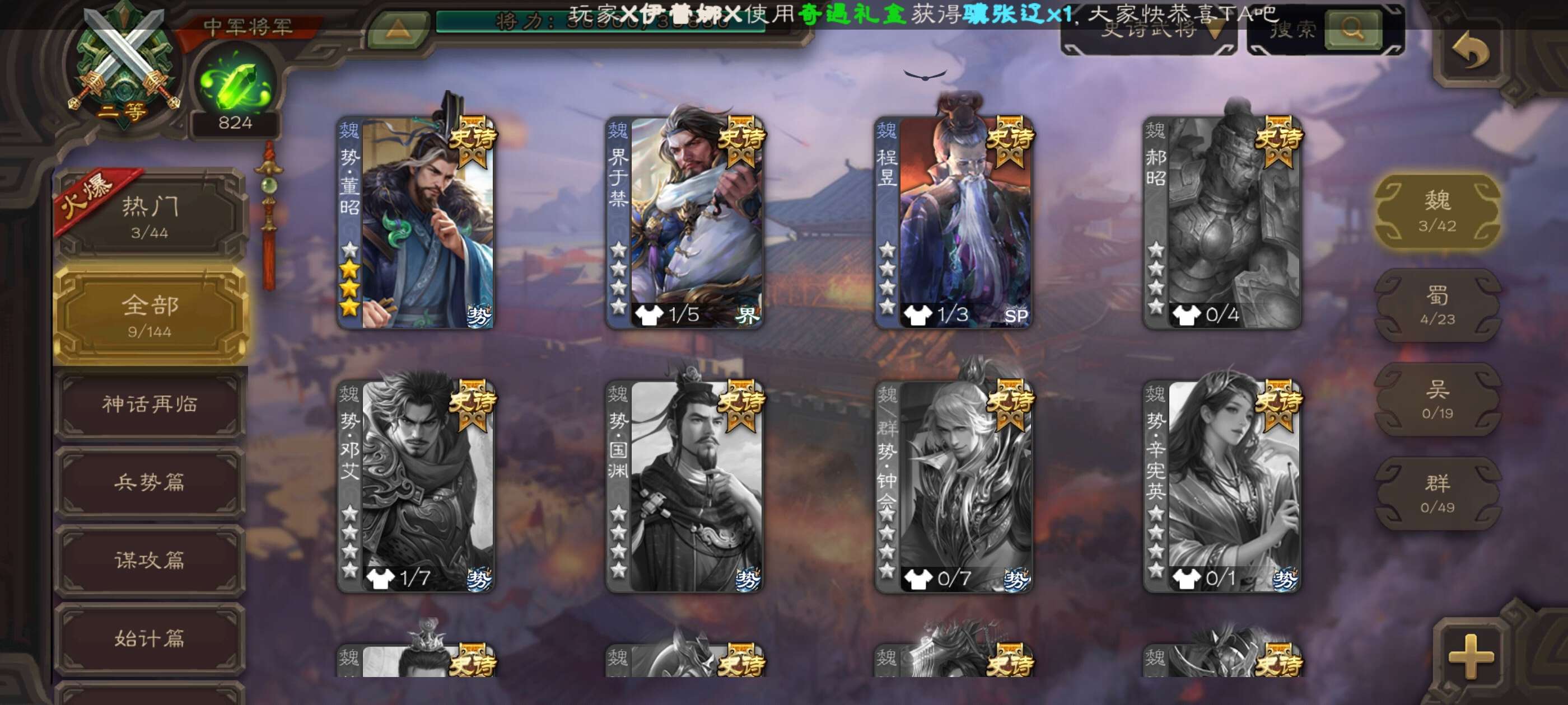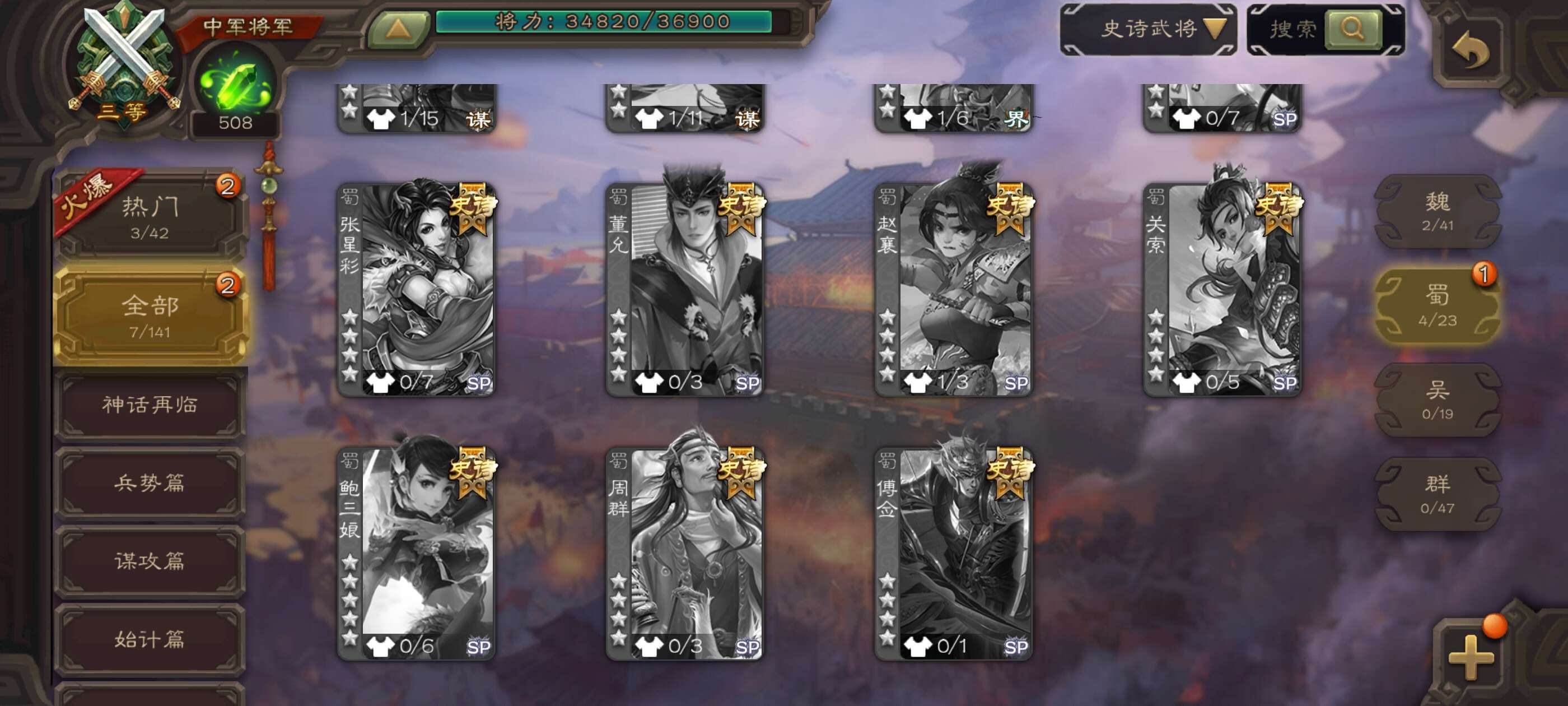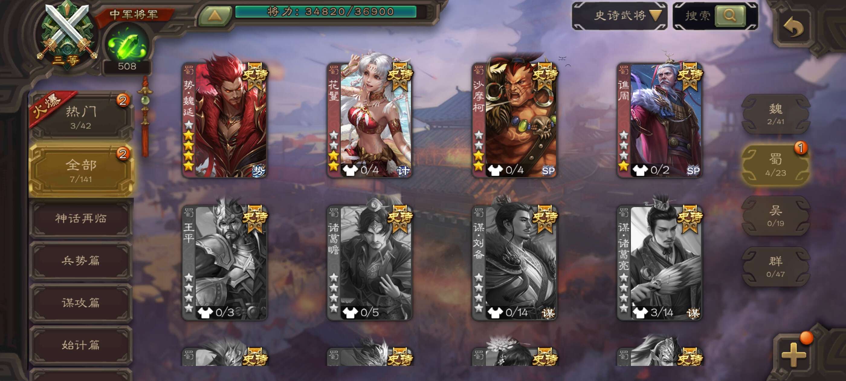 史诗武将数量: