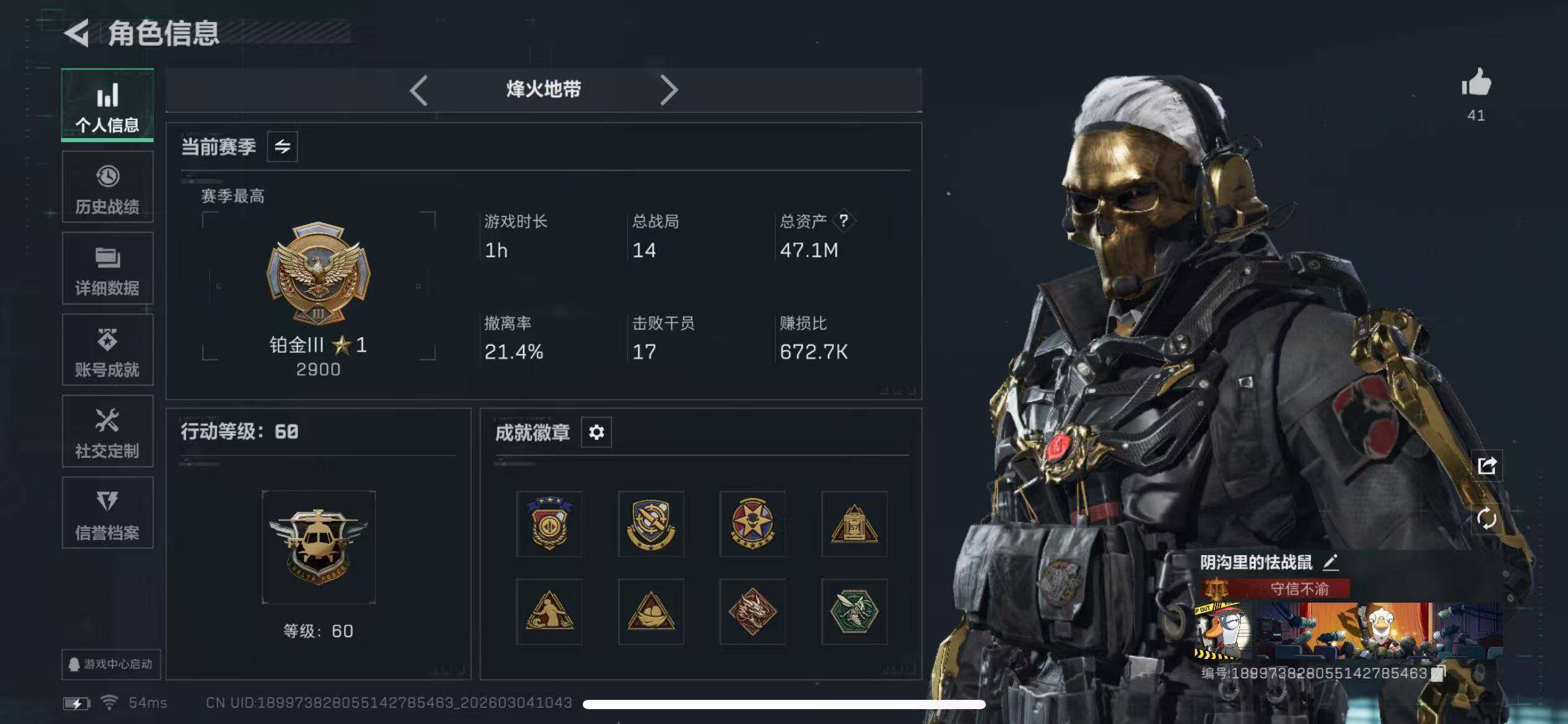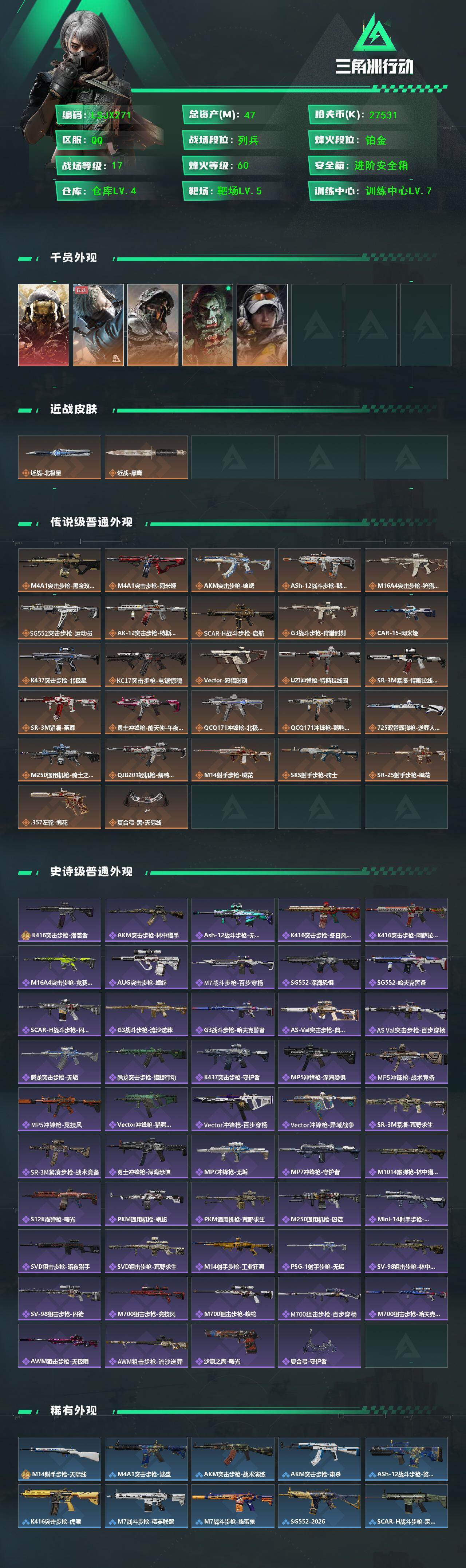 可二次【特价出售/店主推荐】47m总资产-27531k哈伏币-60烽火等级-铂金-17战场等级-列兵