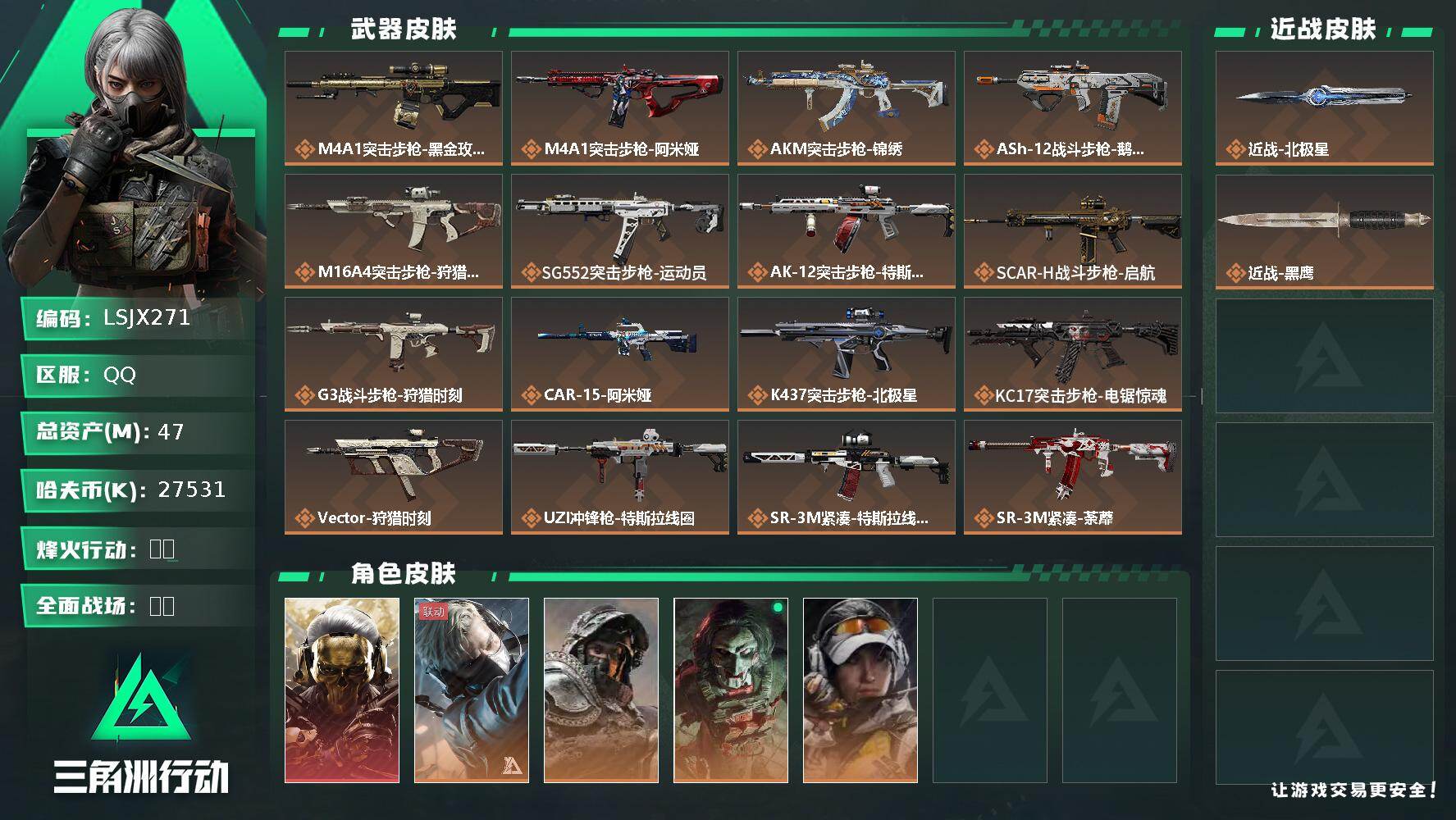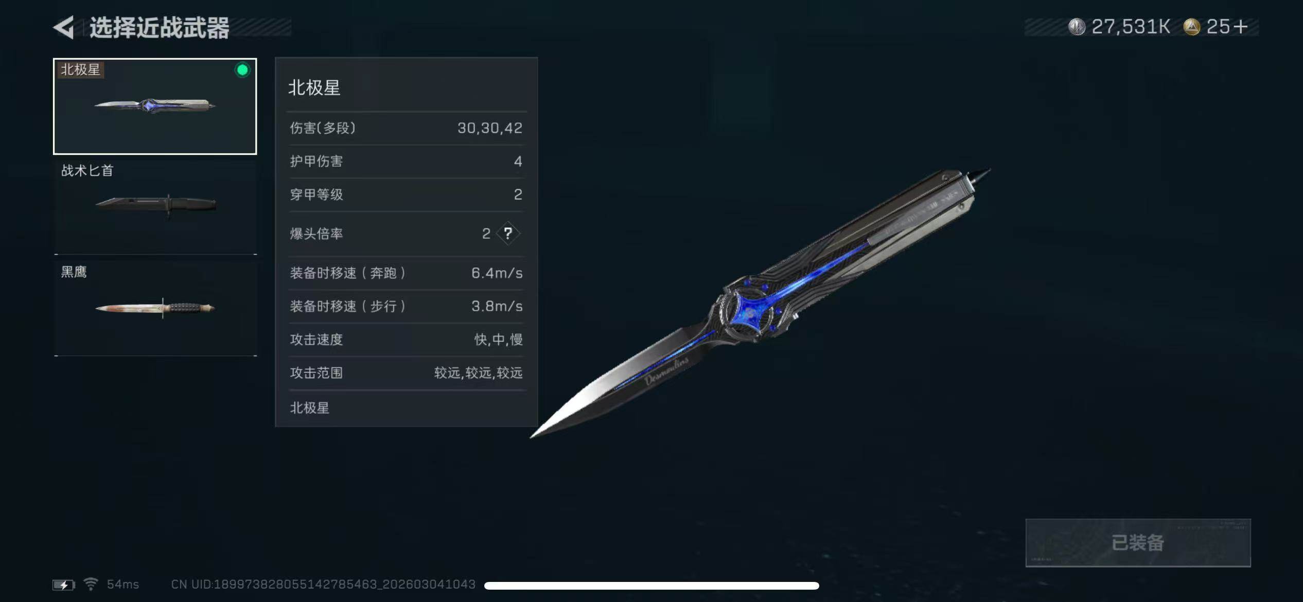 【近战皮肤】:近战-北极星,近战-黑鹰