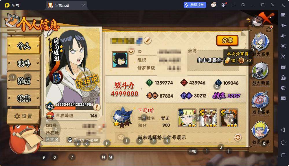 V5/战力499W/S忍8/A忍22/4星干柿鬼鲛/